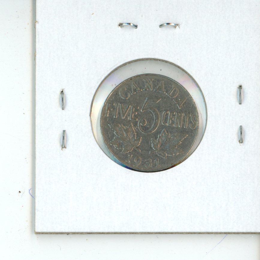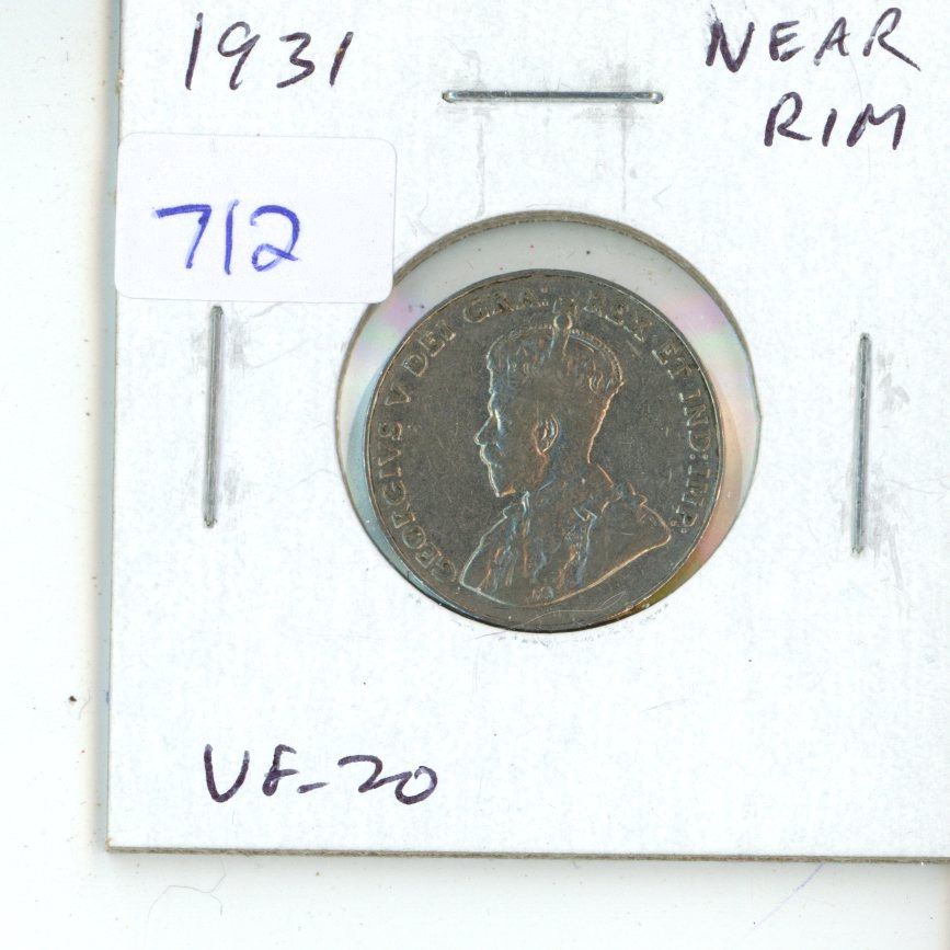 1931 Near Rim George V Nickel 5 Cents. S Near Rim. VF-20.