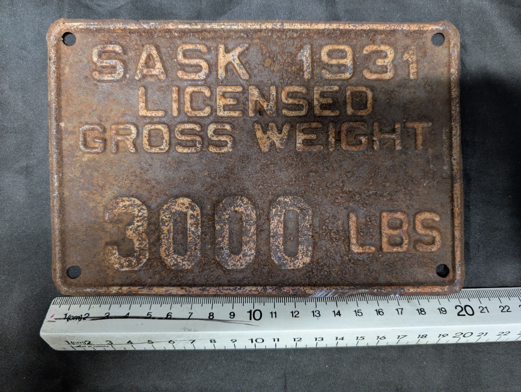 1931 Sask Plate Gross weight 3000LBS