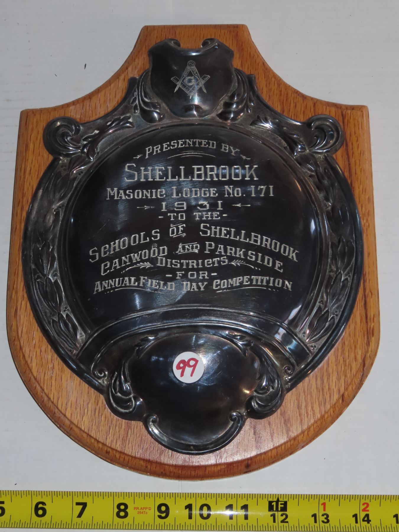 1931 Shellbrook Masonic Lodge No. 171 Plaque