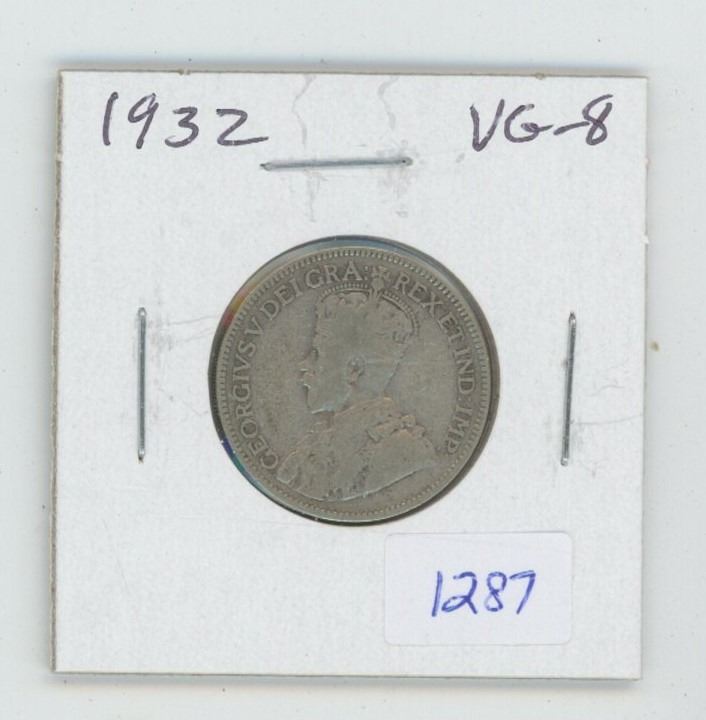 1932 George V Silver 25 Cents. VG-8. Key Date. Mintage of 537,994.