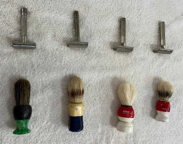 1932 Gillette Made In Canada & England Safety Razors x 4 with 4 Shaving Brushes