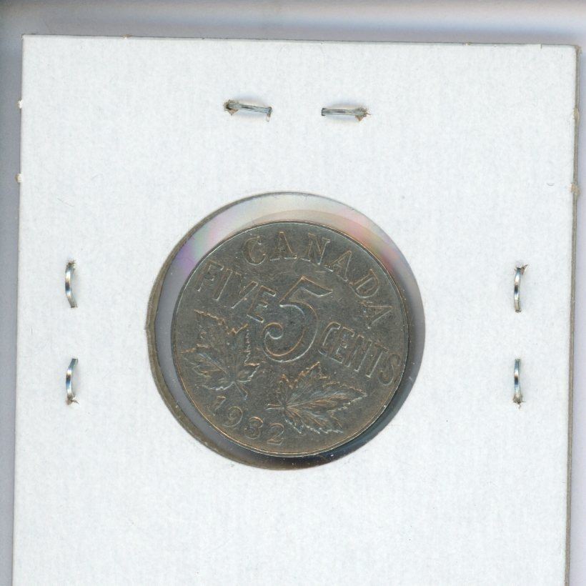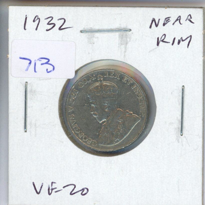 1932 Near Rim George V Nickel 5 Cents. S Near Rim. VF-20.