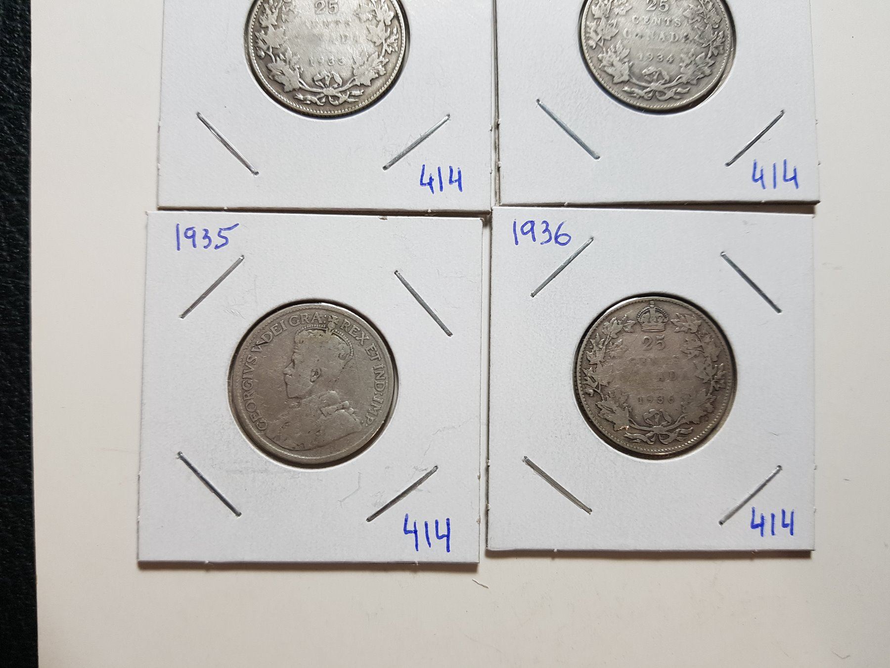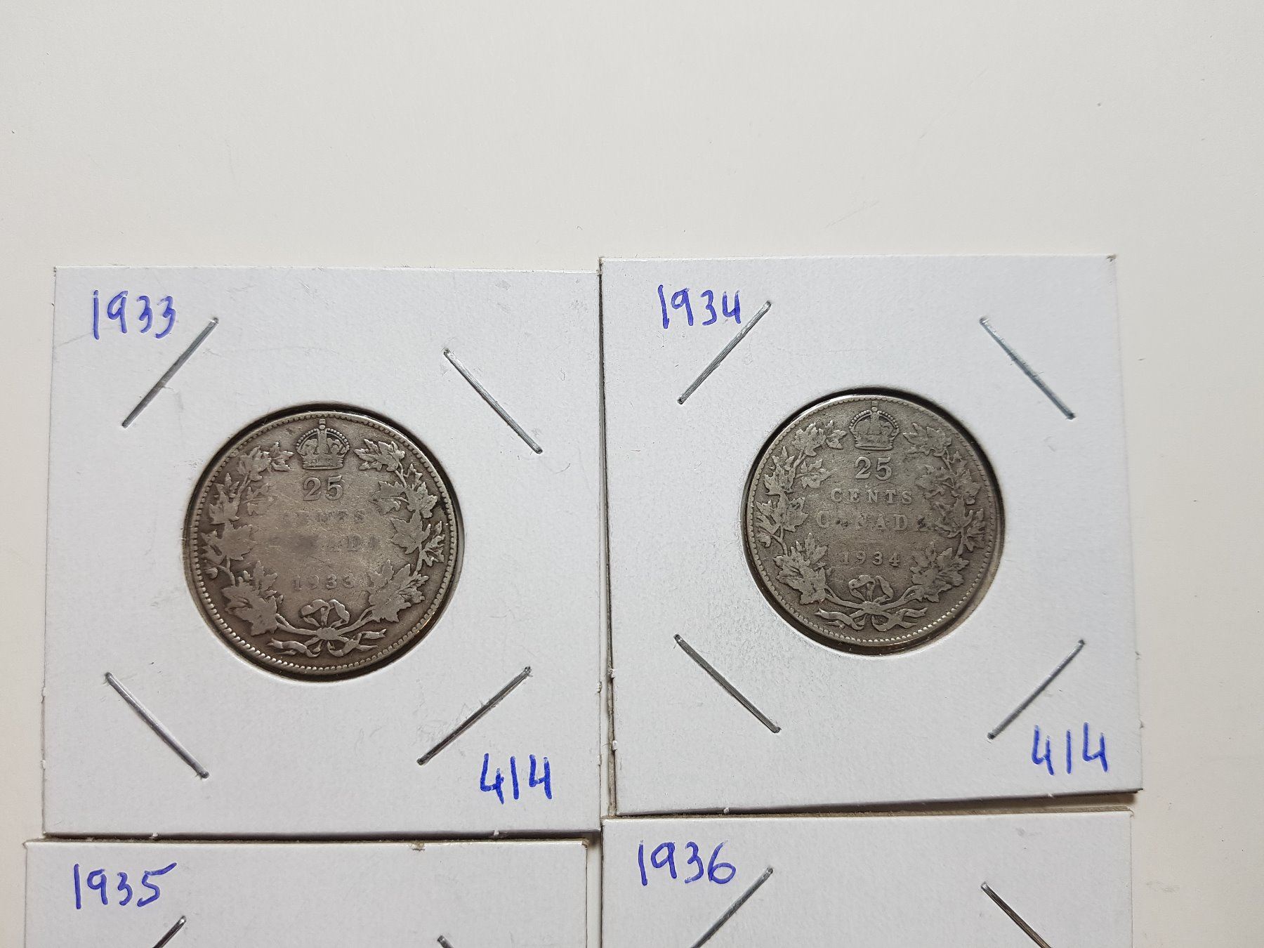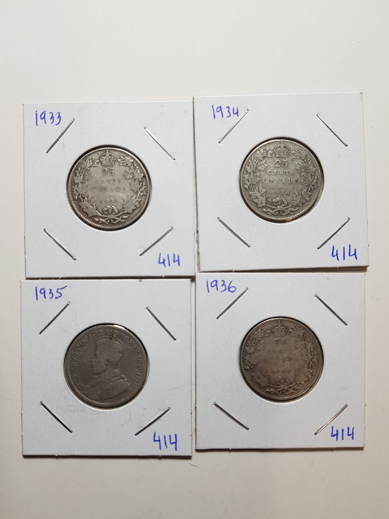 1933, 34, 35, 36 SILVER TWENTY FIVE CENT COINS