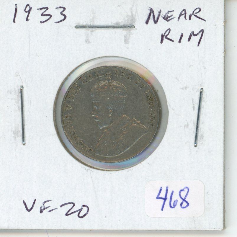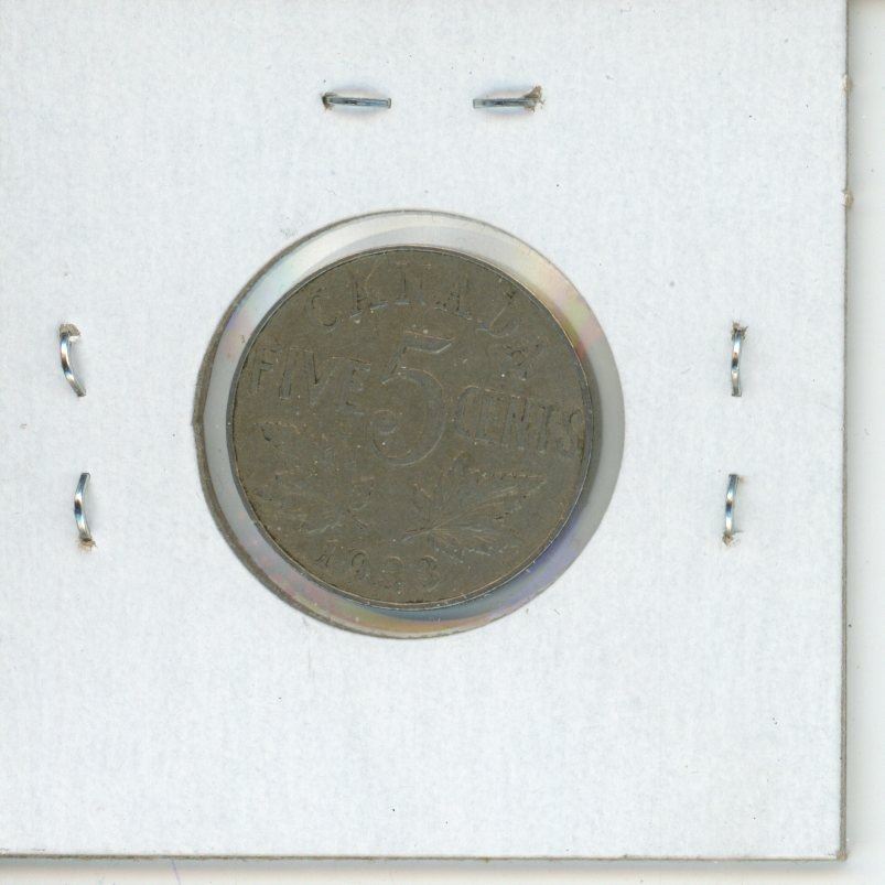 1933 Canadian Nickel 5 Cents. S Near Rim. VF-20.