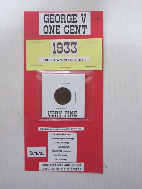 1933 George V 1¢ Very Fine Much scarcer,higher valer with so little wear