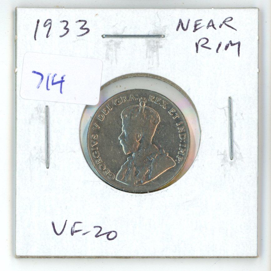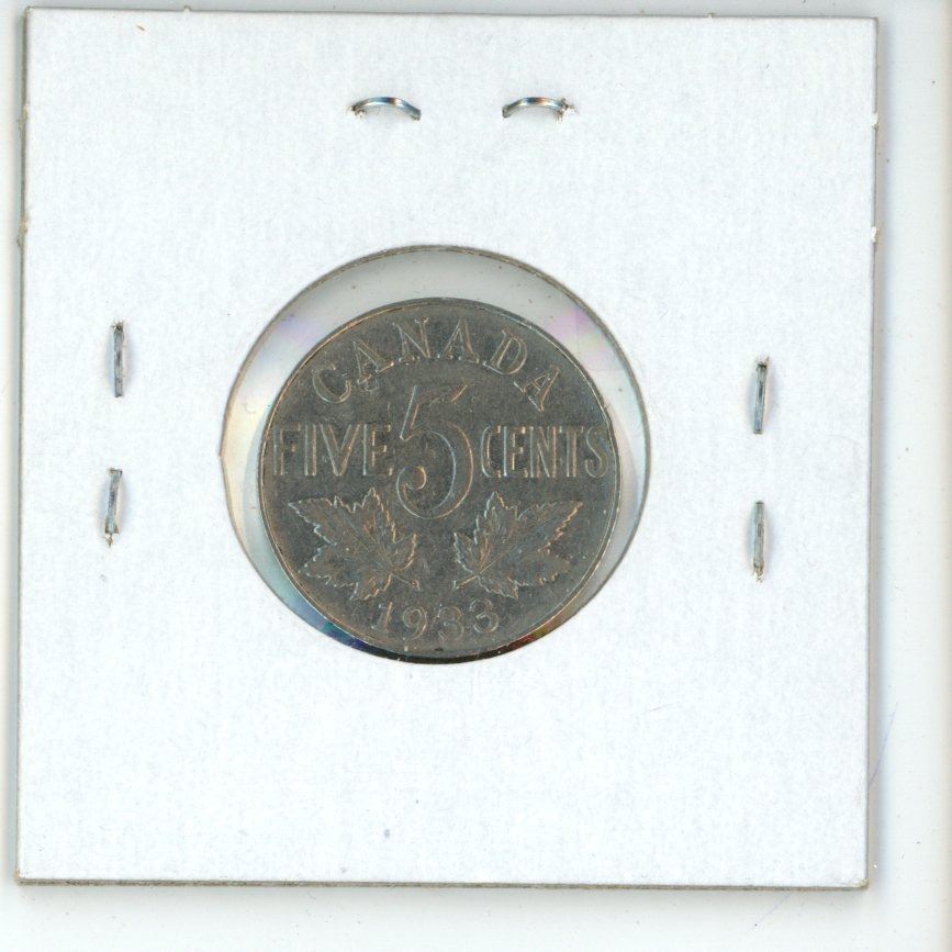 1933 Near Rim George V Nickel 5 Cents. S Near Rim. VF-20.