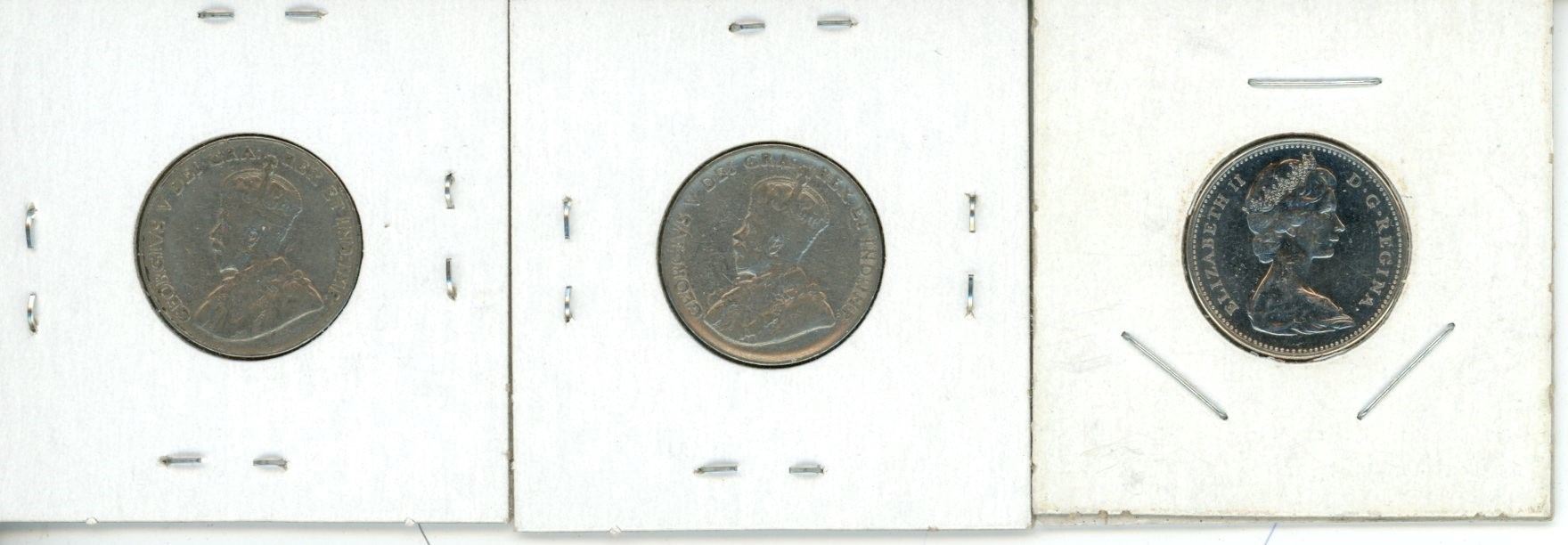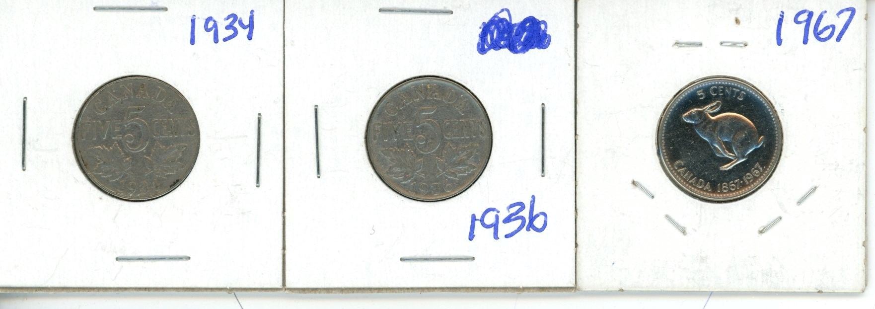 1934, 1936, 1967 Canadian 5 Cent Coin - 3 Piece