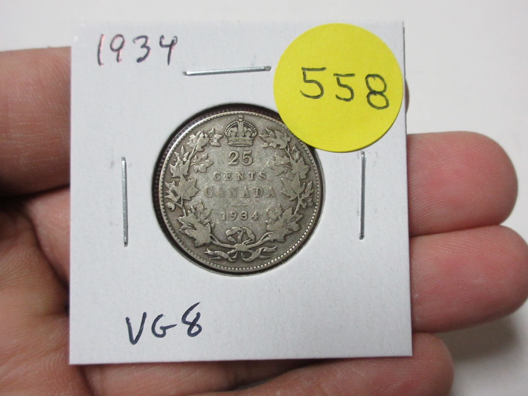 1934 Canadian Silver 25 Cents. Key Date. VG8.