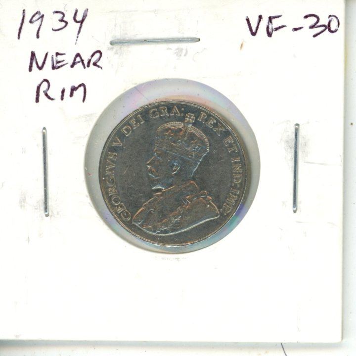 1934 Near Rim Nickel 5 Cents. S is Near Rim. VF-30.