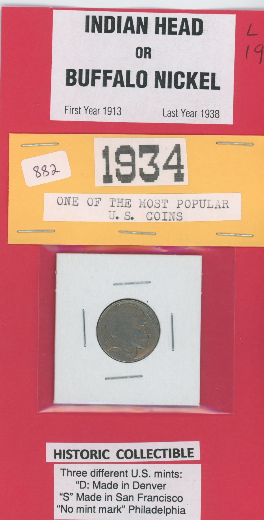 1934 U.S. Indian Head - Buffalo 5 cent