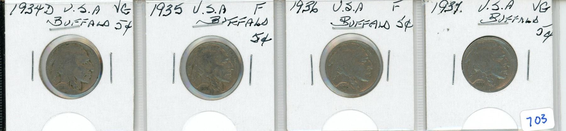 1934D, 1935, 1936, 1937 USA Buffalo Nickels