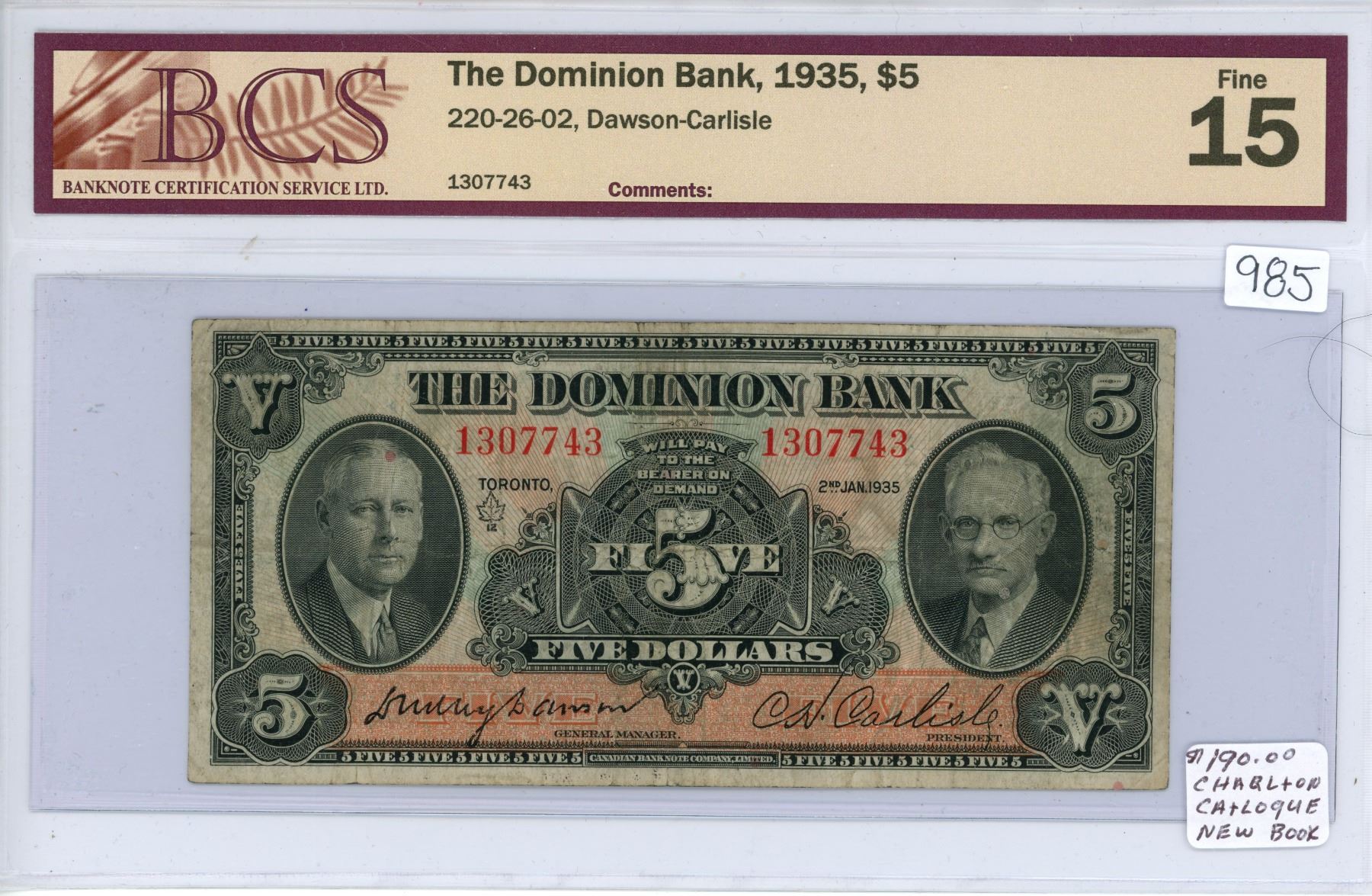 serial no. 1307743 Dawson Carlisle