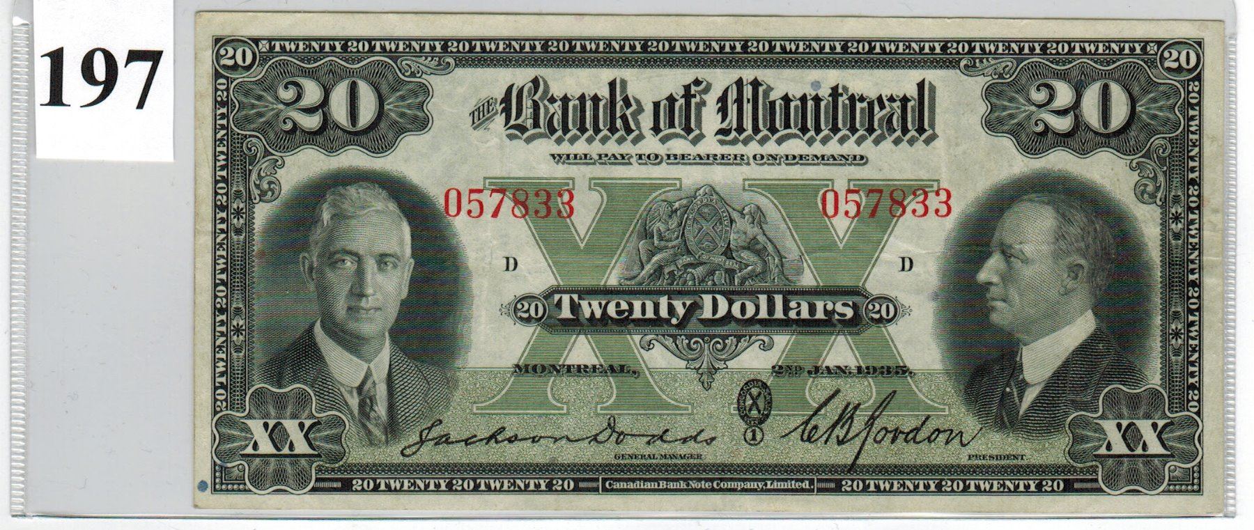 1935 BANK OF MONTREAL ($20 BANKNOTE) *SER. # 057833*