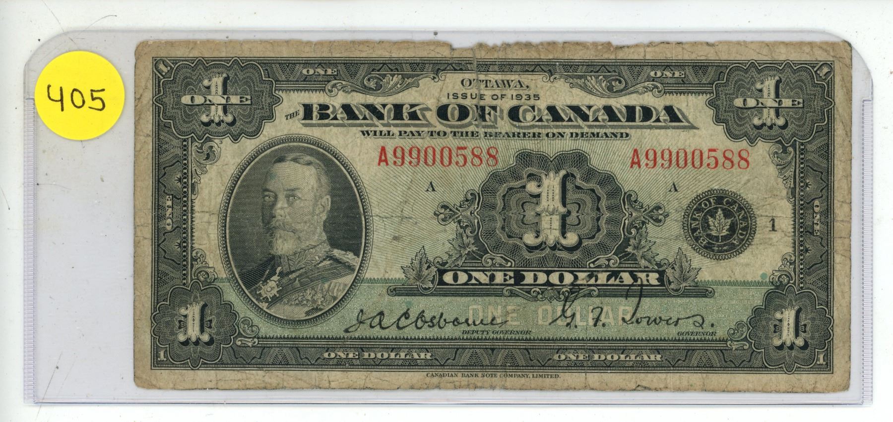1935 Bank Of Canada One Dollar.