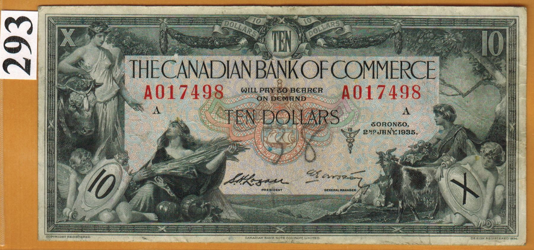 1935 CANADIAN BANK OF COMMERCE - $10 BANKNOTE - SER. # A017498