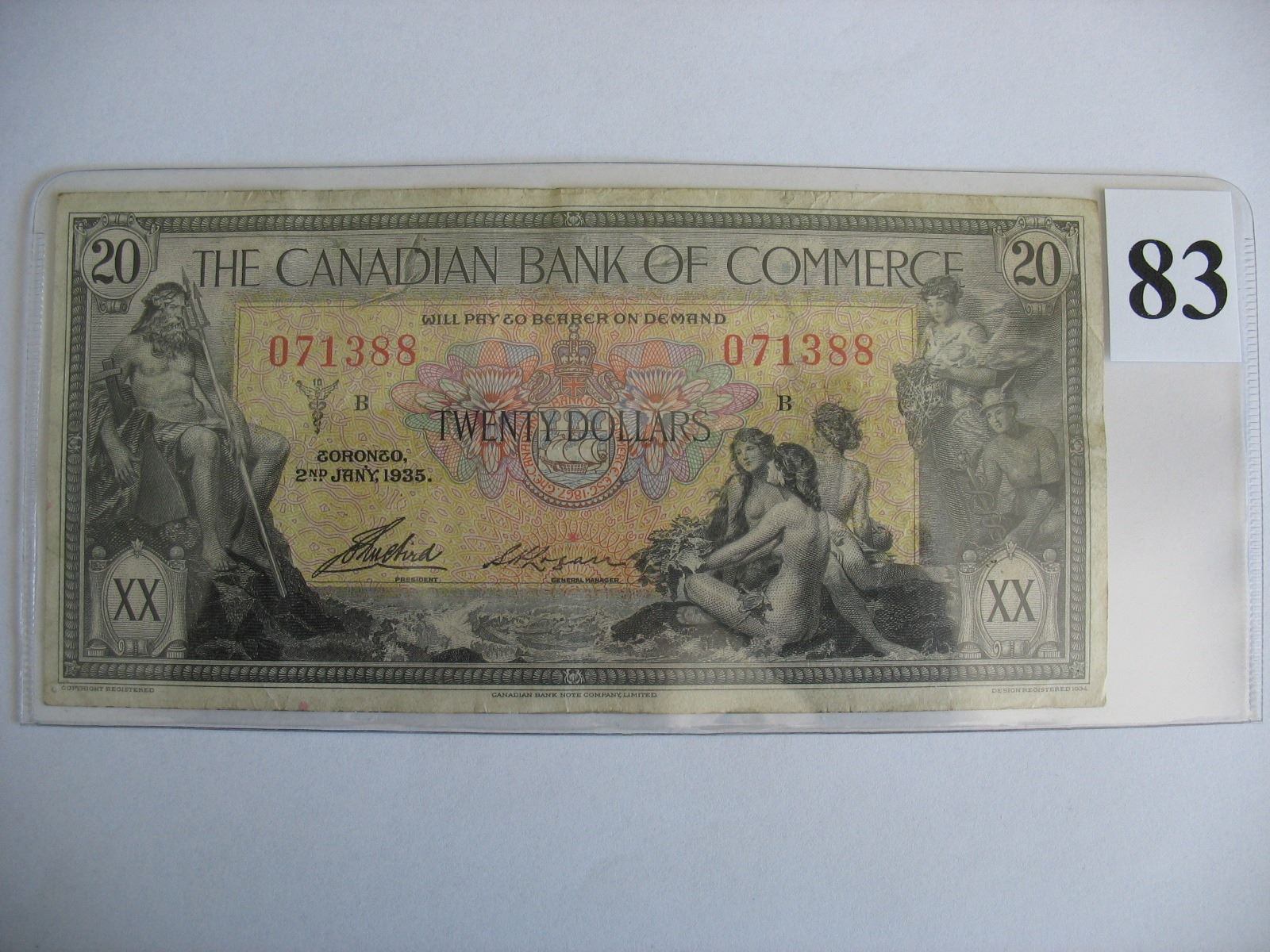 1935 Canadian Bank of Commerce $20 Bill - Ser. # 071388