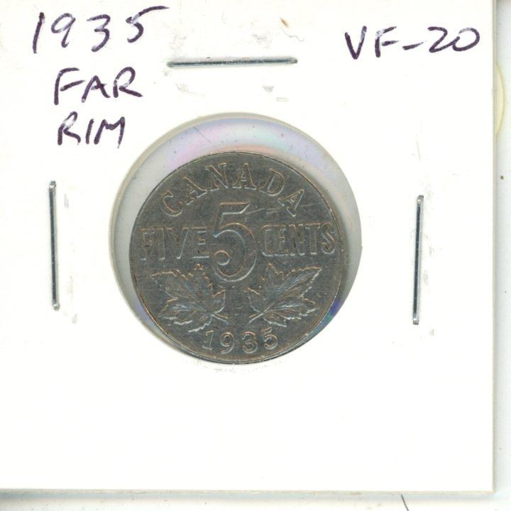 1935 Far Rim Nickel 5 Cents. S is Far from Rim. VF-20.