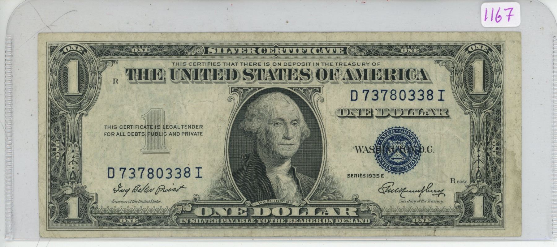 1935E USA Silver certificate 1 dollar bill - D73780338I