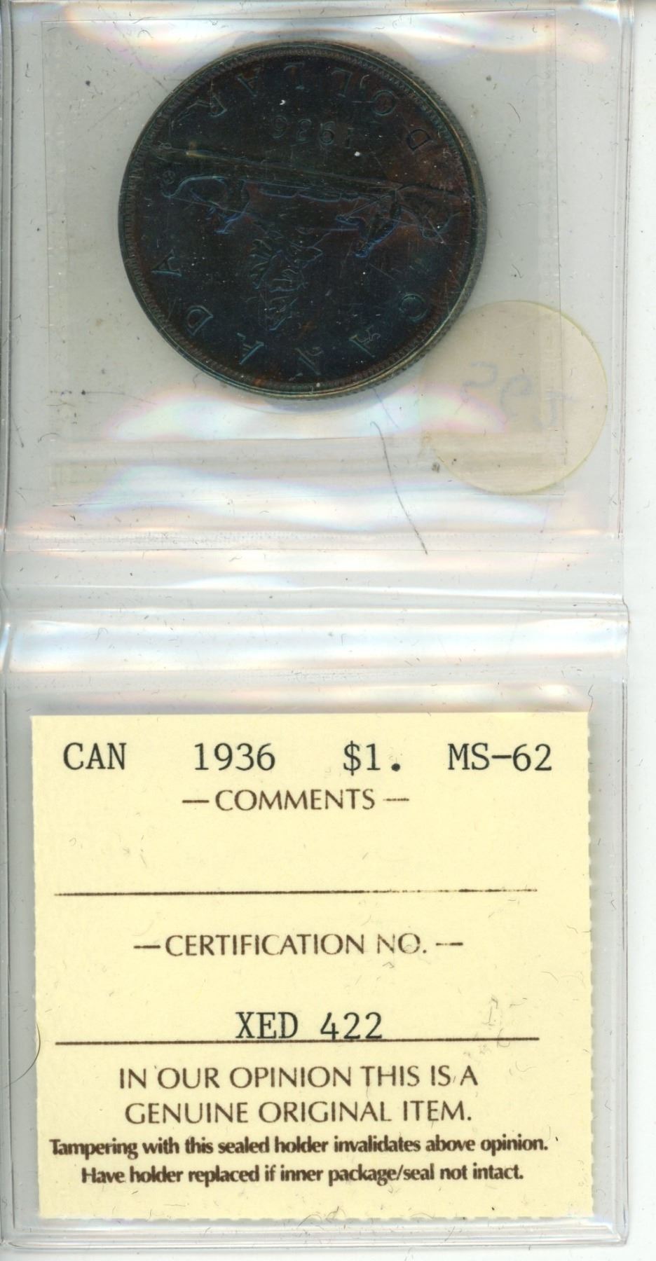 1936 Canada One Dollar - MS-62 - Silver - XED 422 - ICCS.