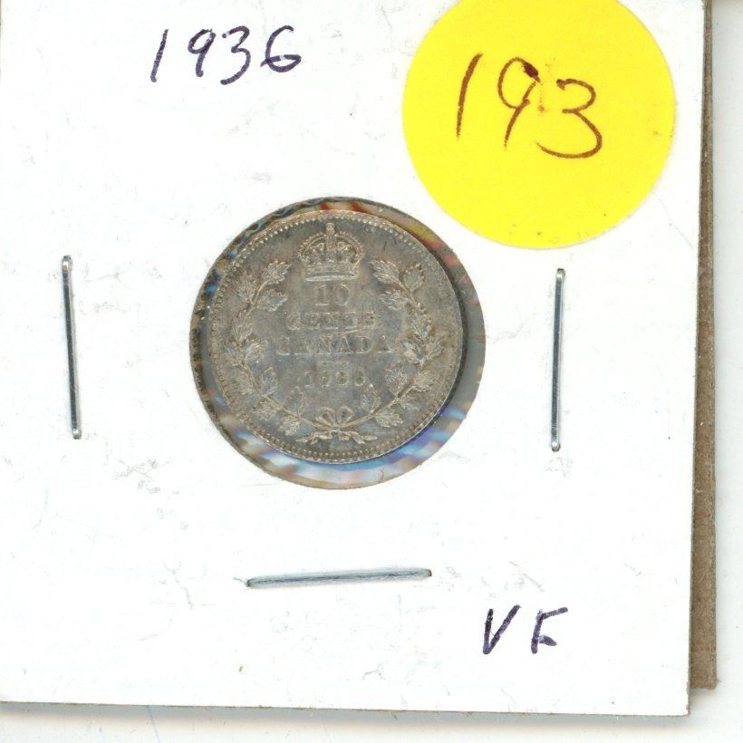 1936 Canada Silver 10 cent Coin