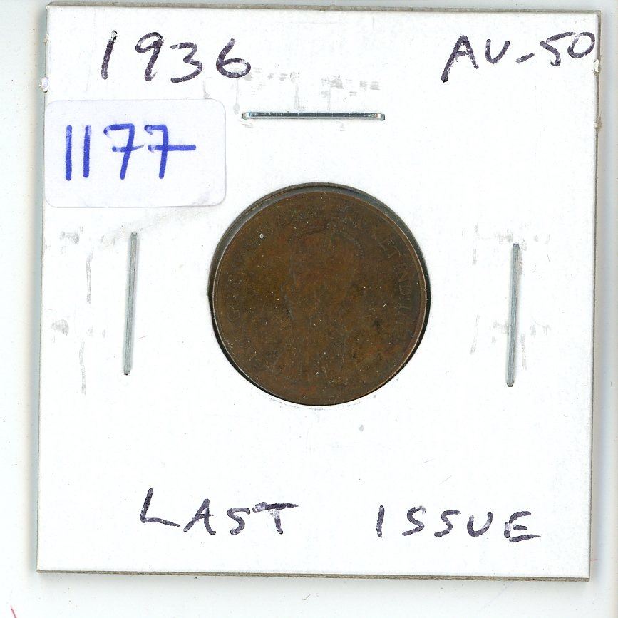 1936 Canadian King George V Small Cent. The last cent issued for King George V. AU-50.