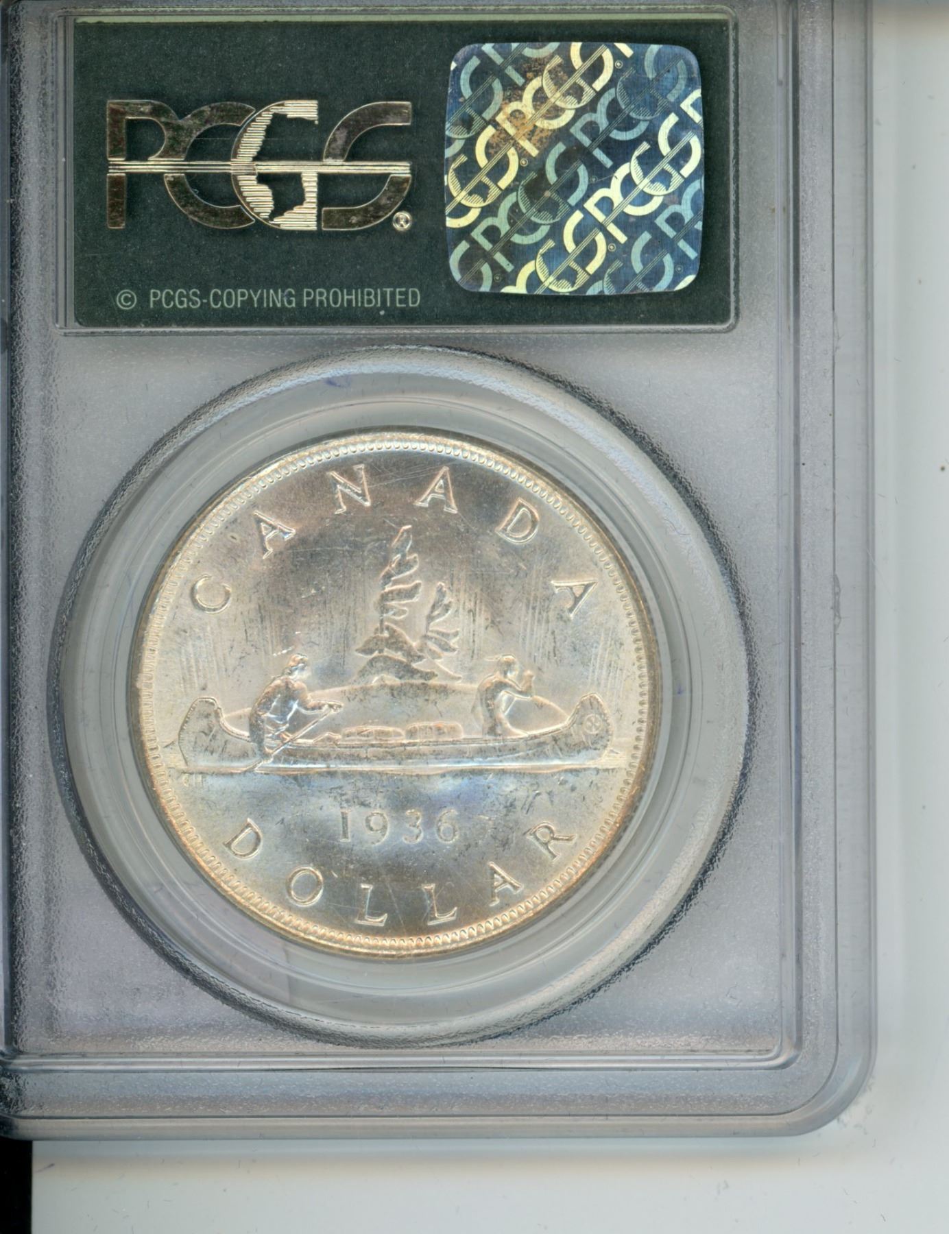 1936 Canadian PCGS Graded Silver 1 Dollar Coin - MS-64