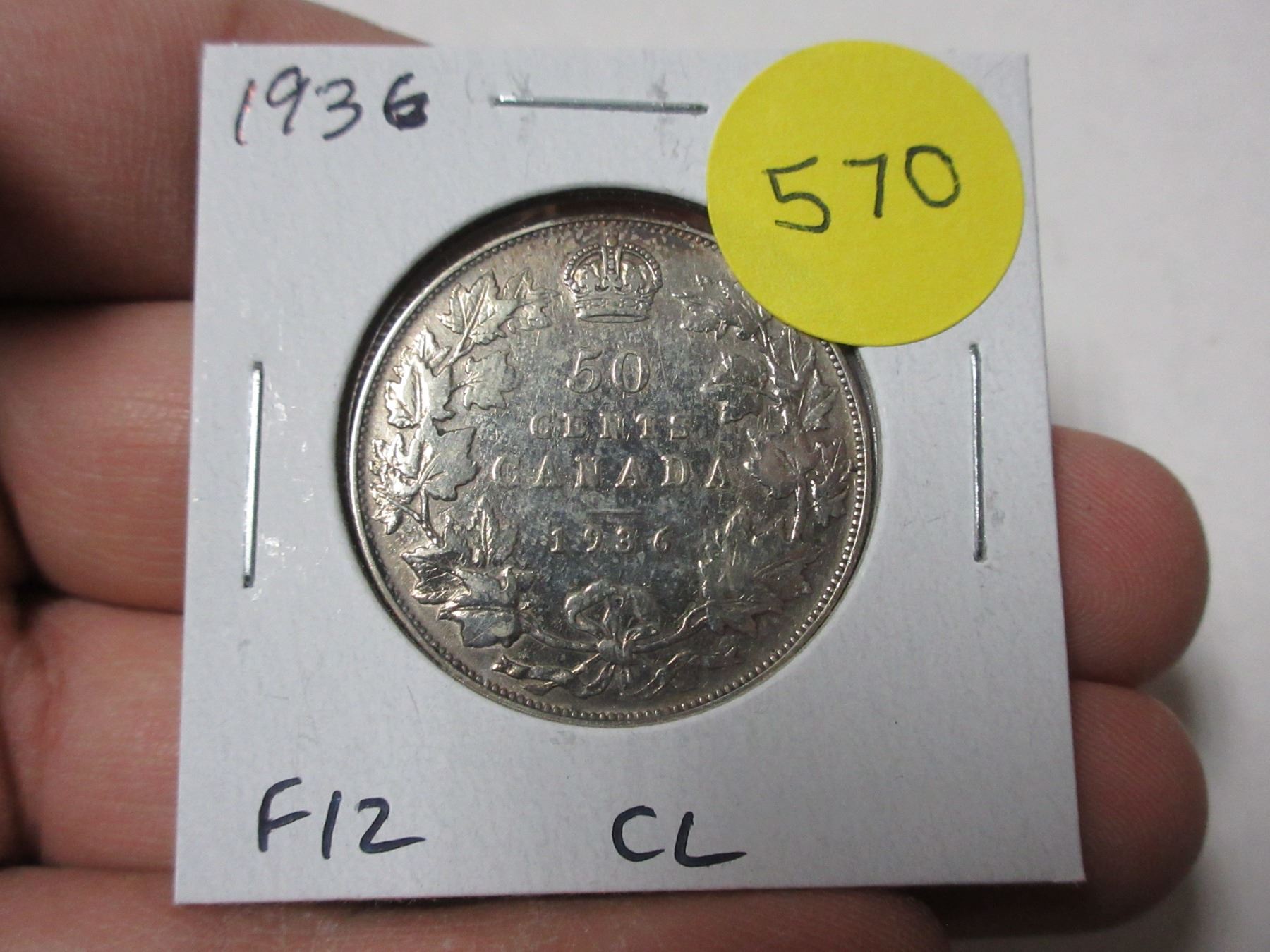 1936 Canadian Silver 50 Cents. Mintage of 38,550. F12. Cleaned. Scarce.