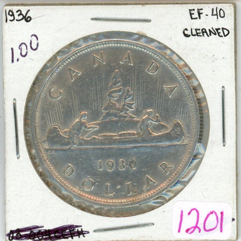 1936 Canadian Voyager silver dollar - EF-40, cleaned