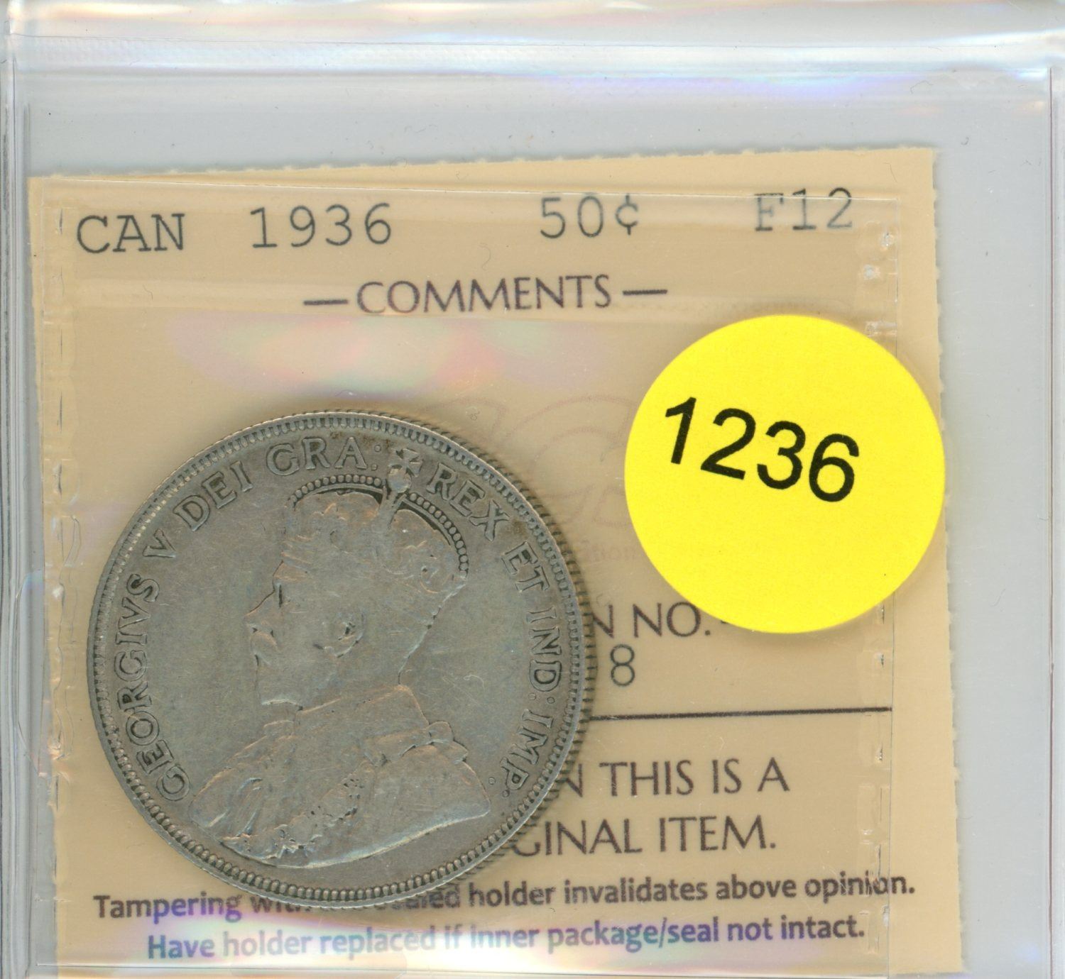 1936 F12 ICCS Graded Canadian Fifty Cent Coin