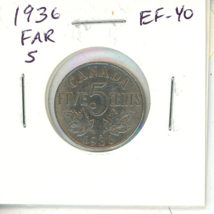 1936 Far Rim Nickel 5 Cents. S is Far from Rim. EF-40.