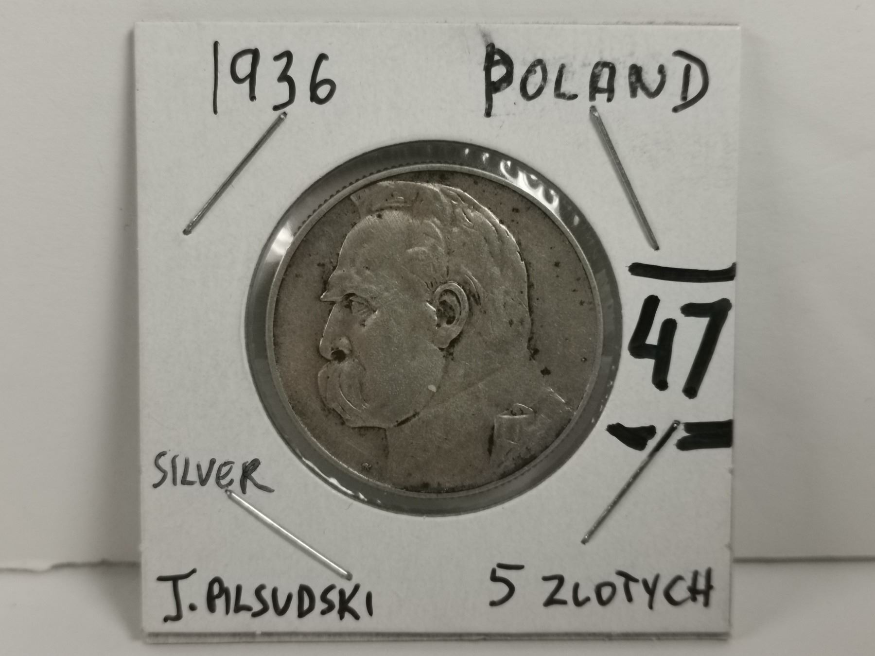 1936 Poland 5 Zloty silver coin, General Pilsudski