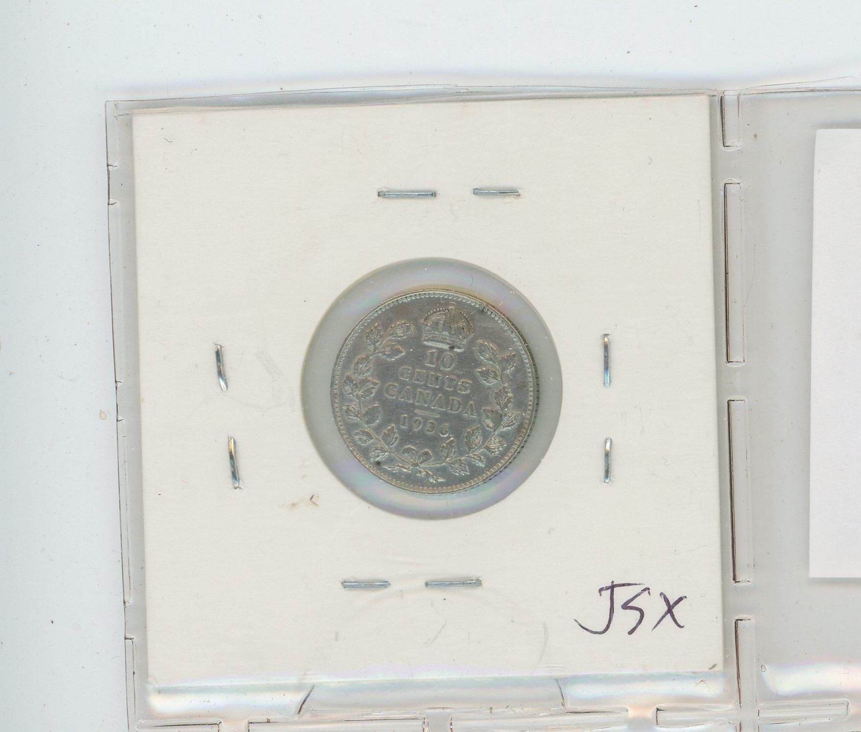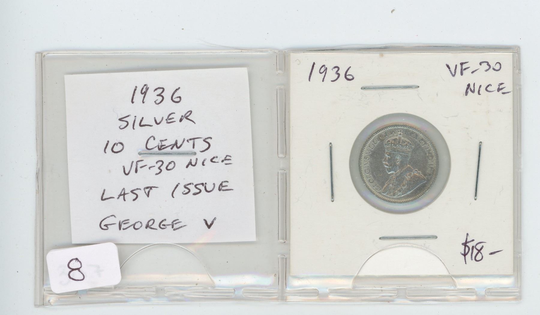 1936 SILVER 10 CENTS. THE LAST SILVER 10 CENTS ISSUED FOR GEORGE V. VF-30. NICE.