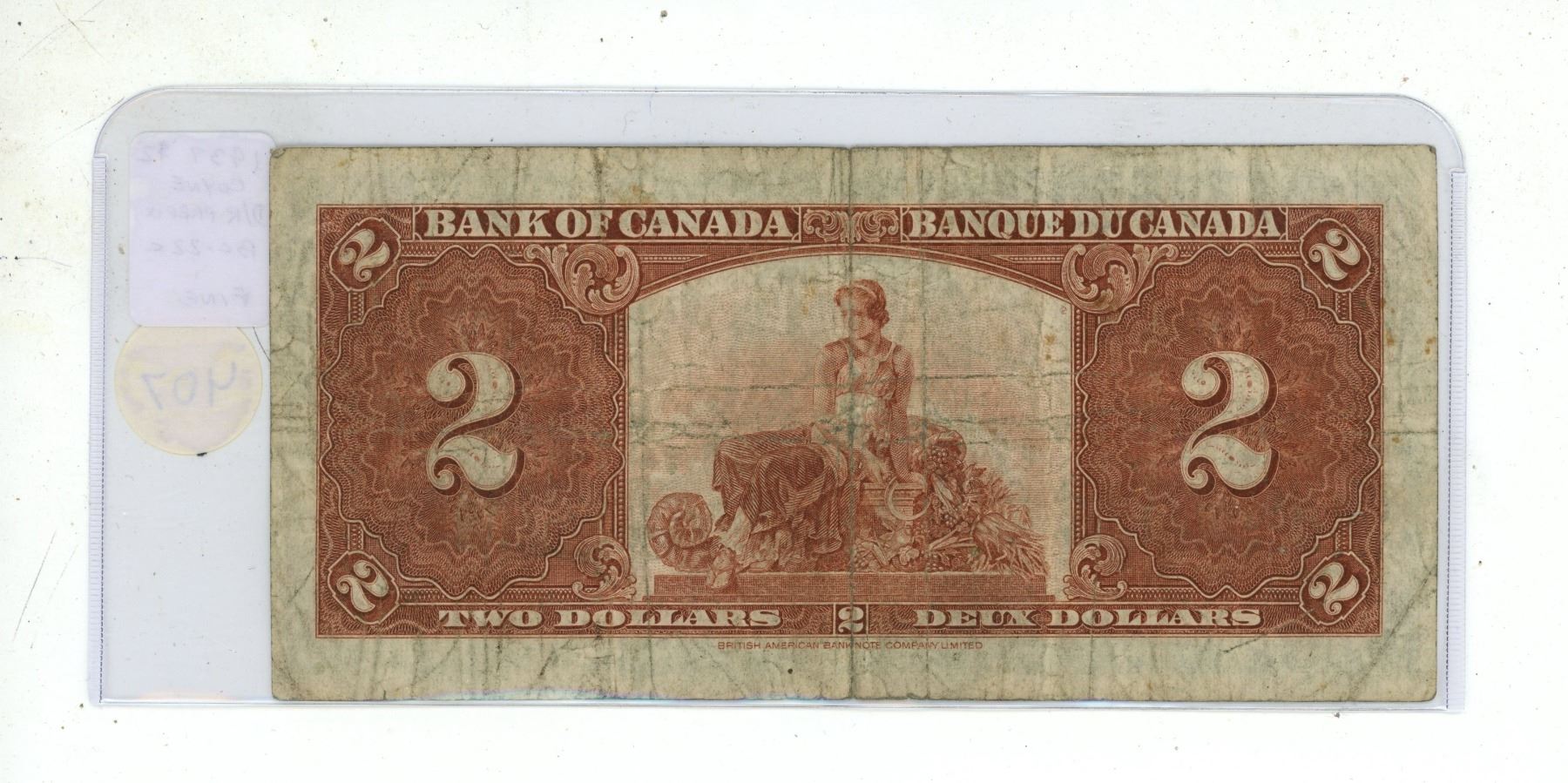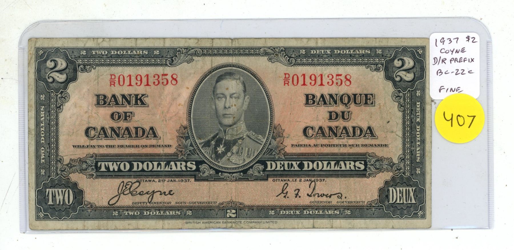1937 $2. Coyne-Towers signatures. D/R Prefix. BC-22c. Fine12.