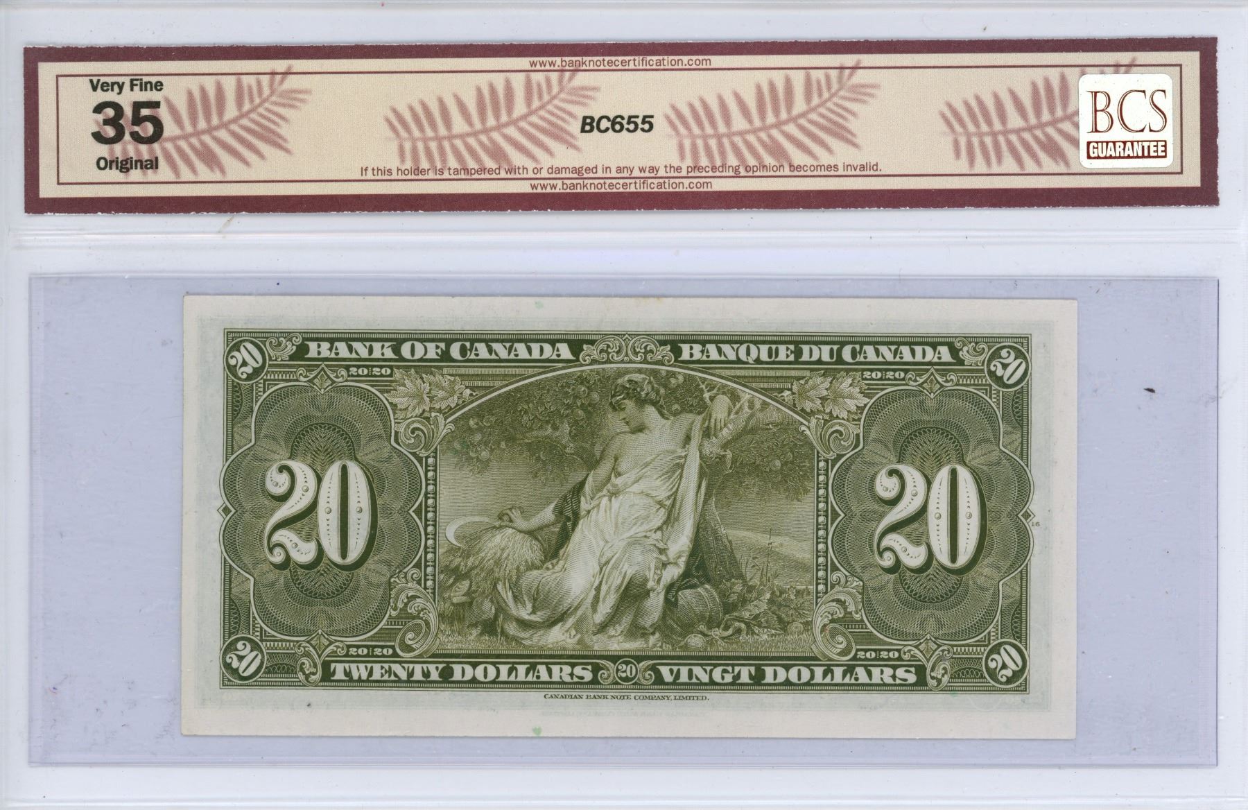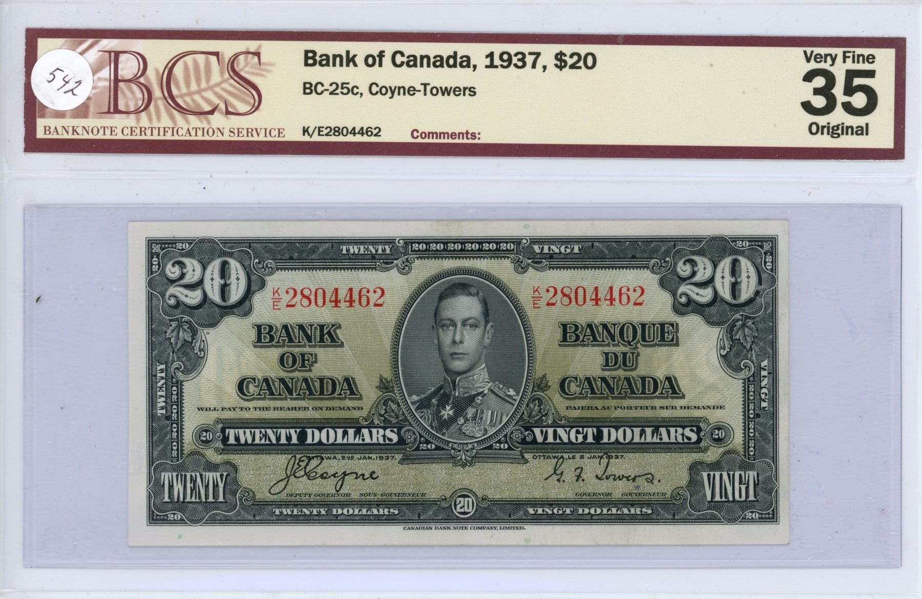 1937 $20.00 Bank of Canada BCS graded VF-35