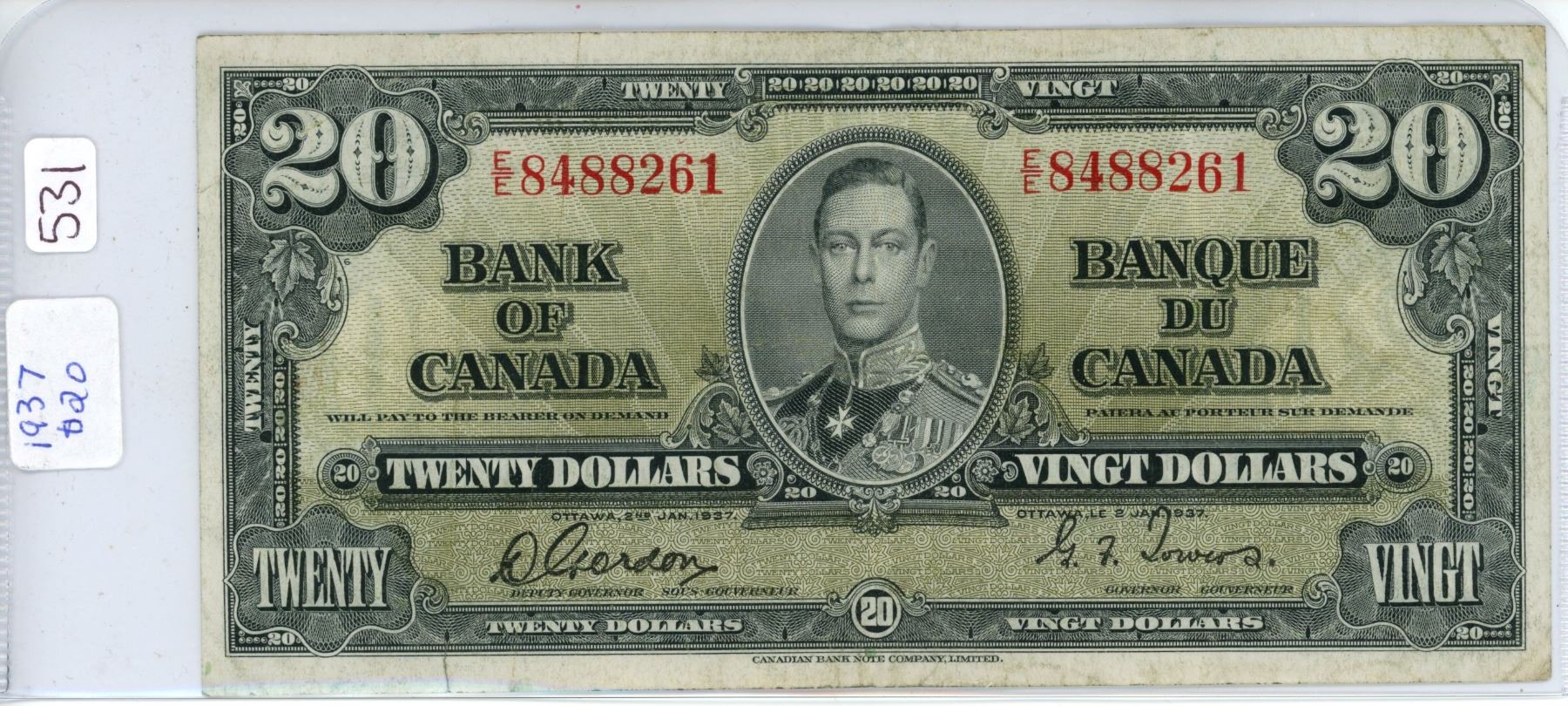 1937 $20.00 bill serial # E/E 8488261