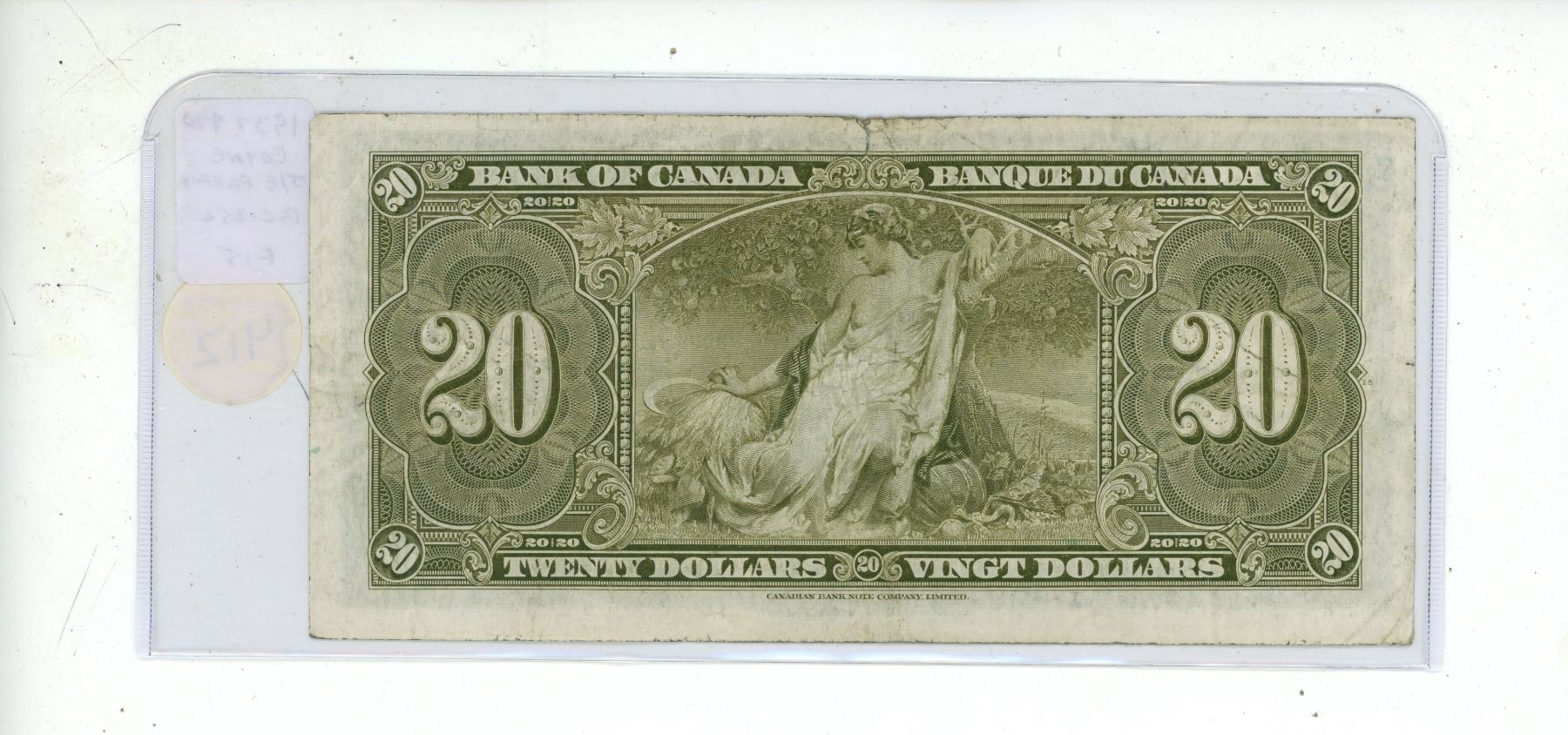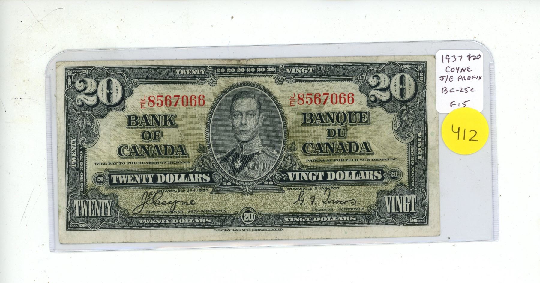 1937 $20. Coyne-Towers signatures. J/E Prefix. BC-25c. F15.
