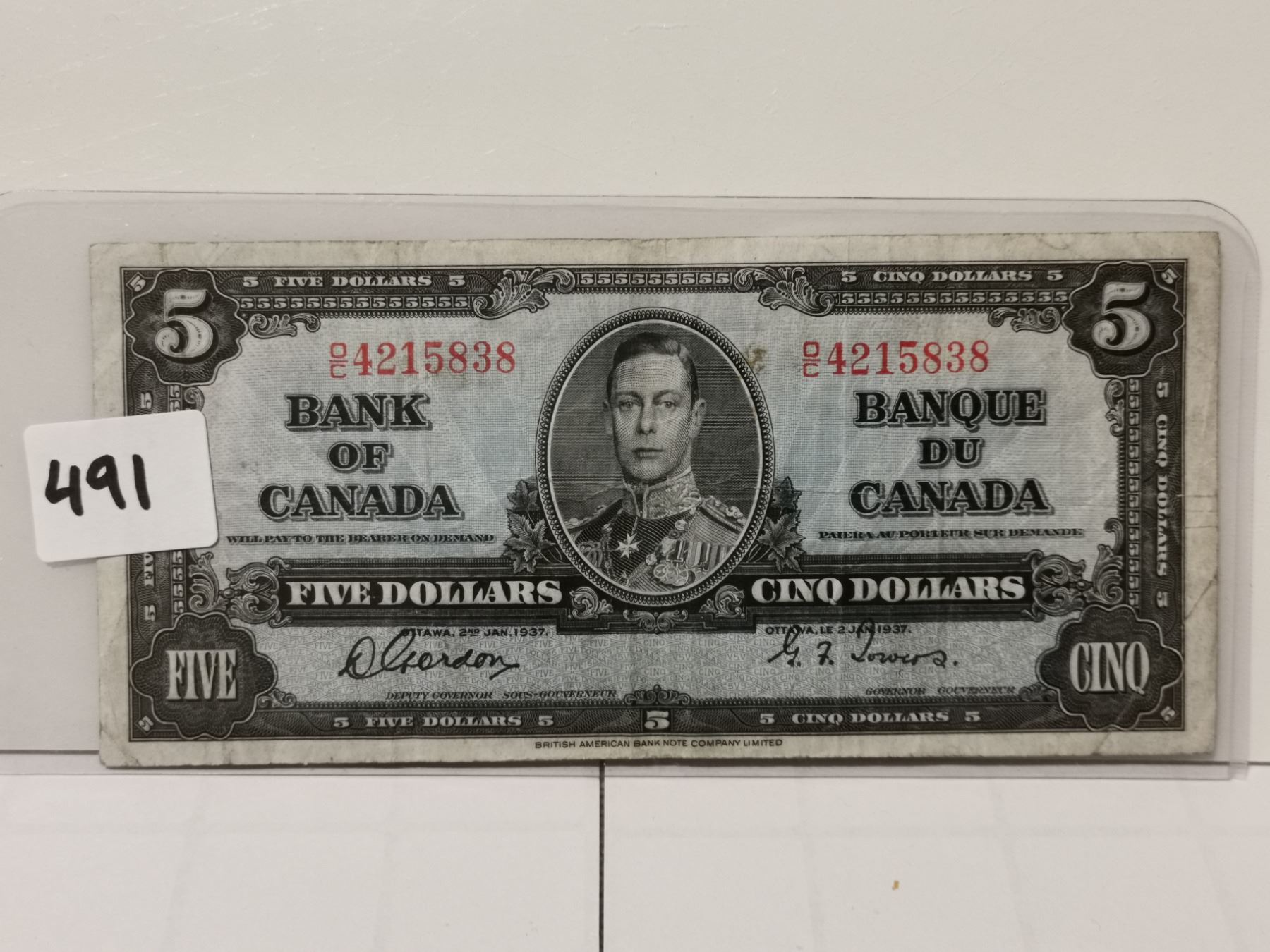 1937 $5 Bill, Gordon/Towers