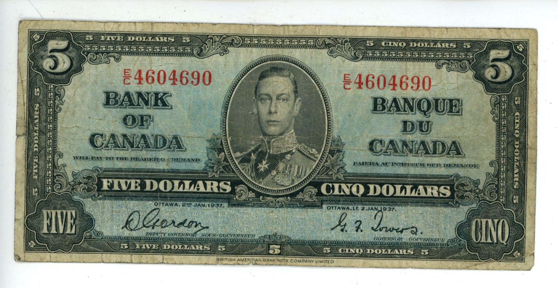 1937 $5 Canada Bill