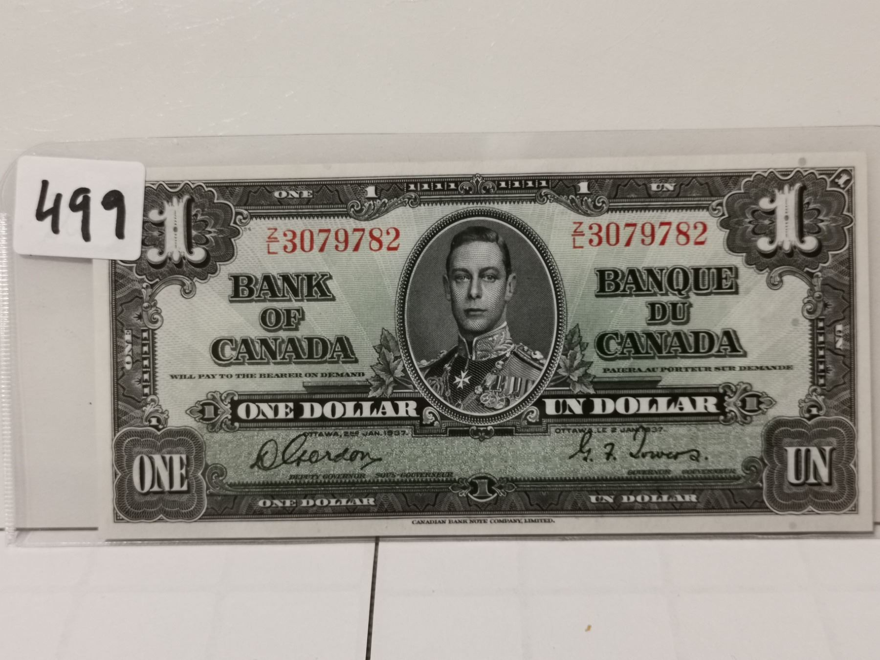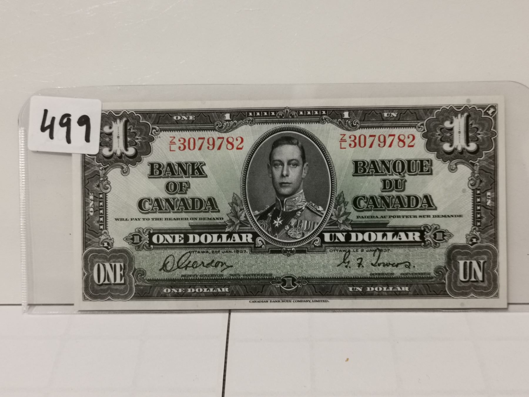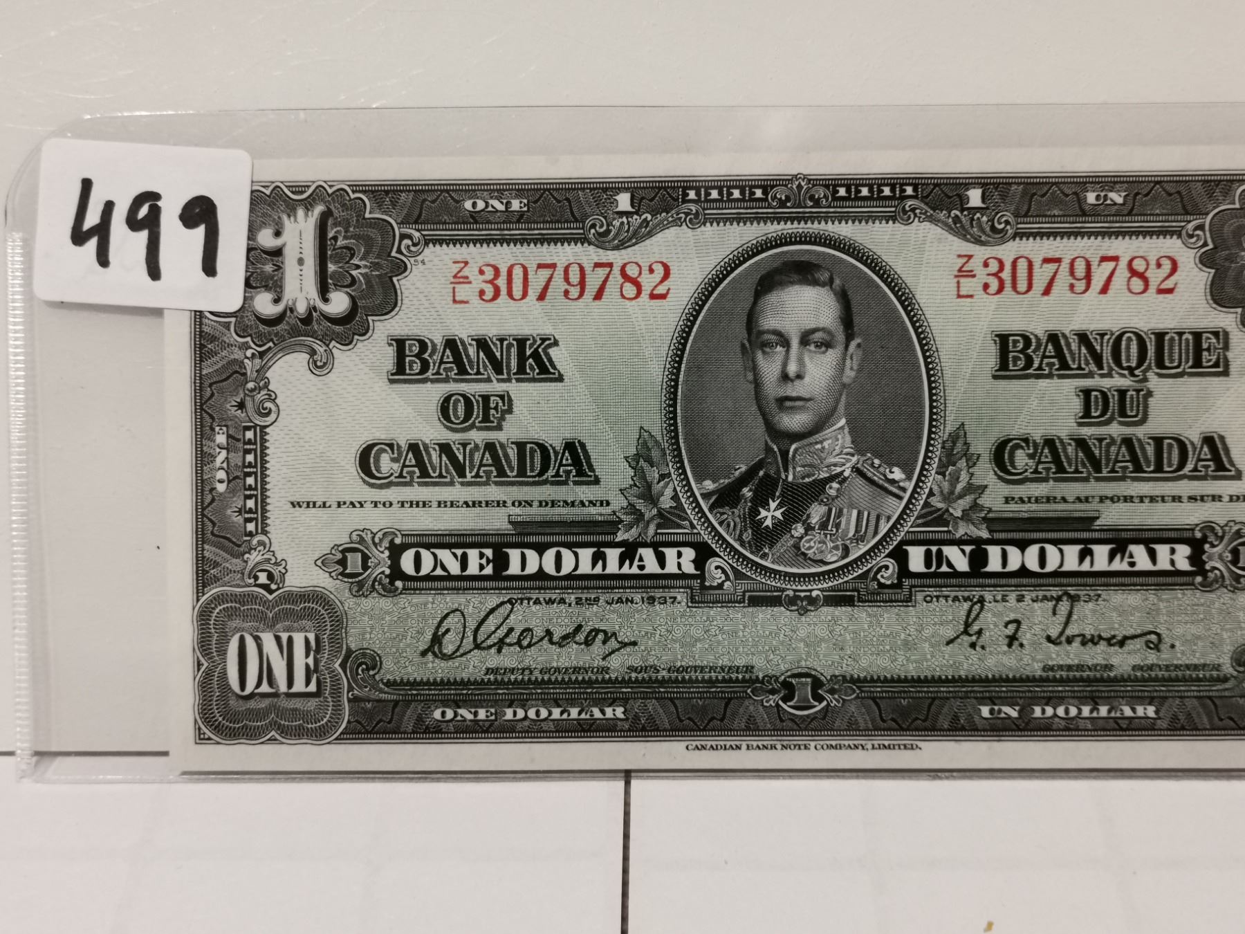 1937 AV+ $1 Bill, Gordon/Towers, Nice