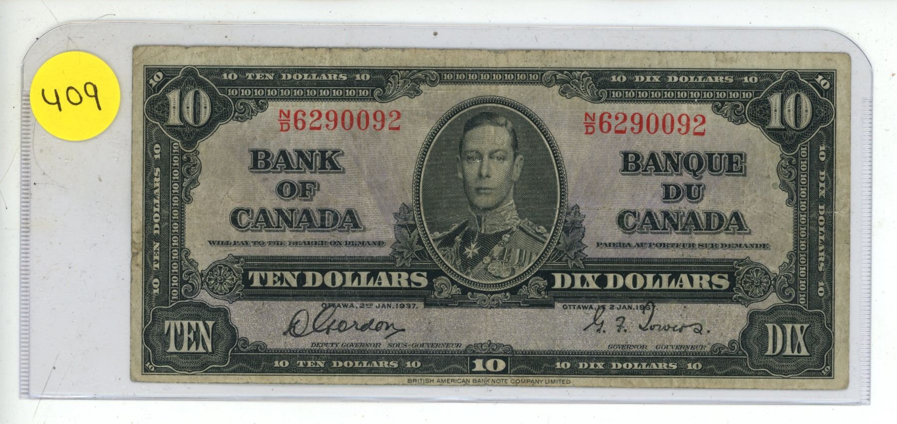 1937 Bank Of Canada Ten Dollar.