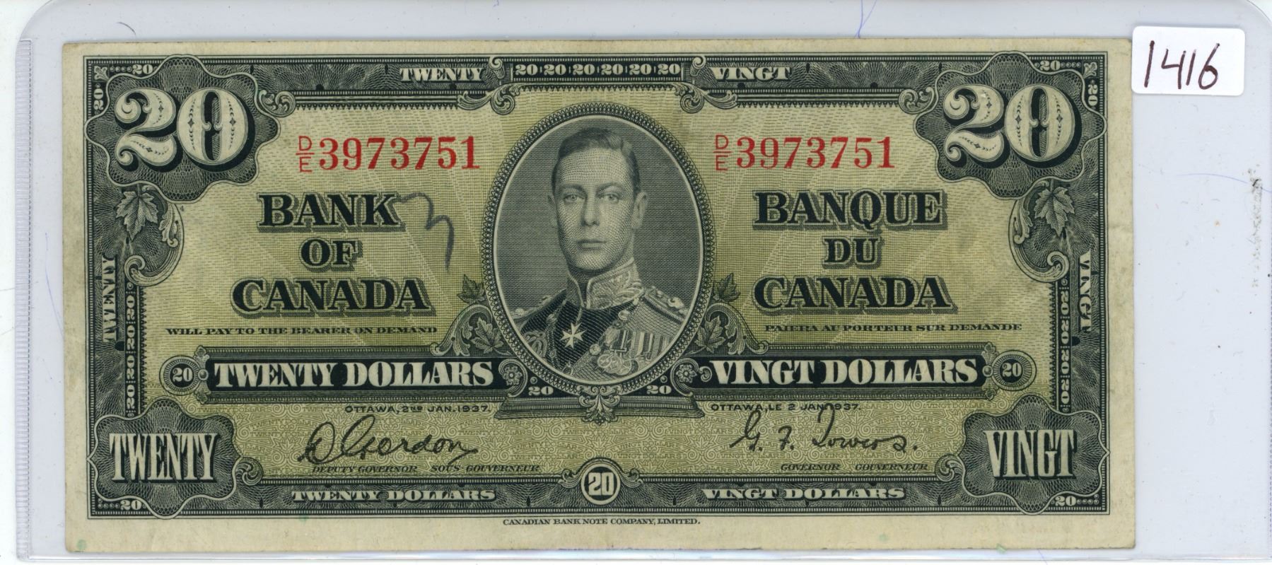 1937 Bank of Canada 20 dollar bill - Gordon/Towers - D/E 3973751