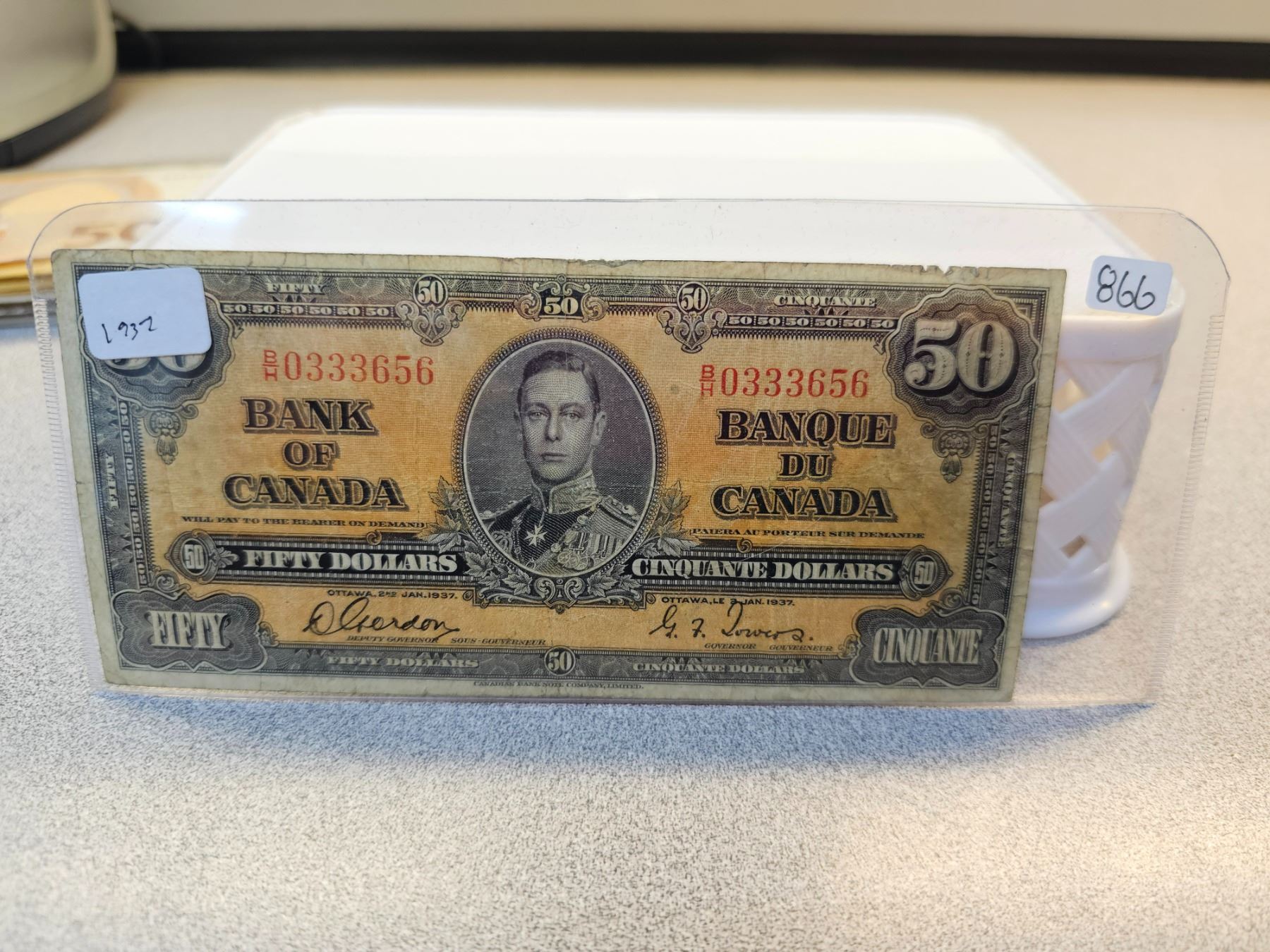1937 Bank of Canada $50.00 Gordon Towers B/H