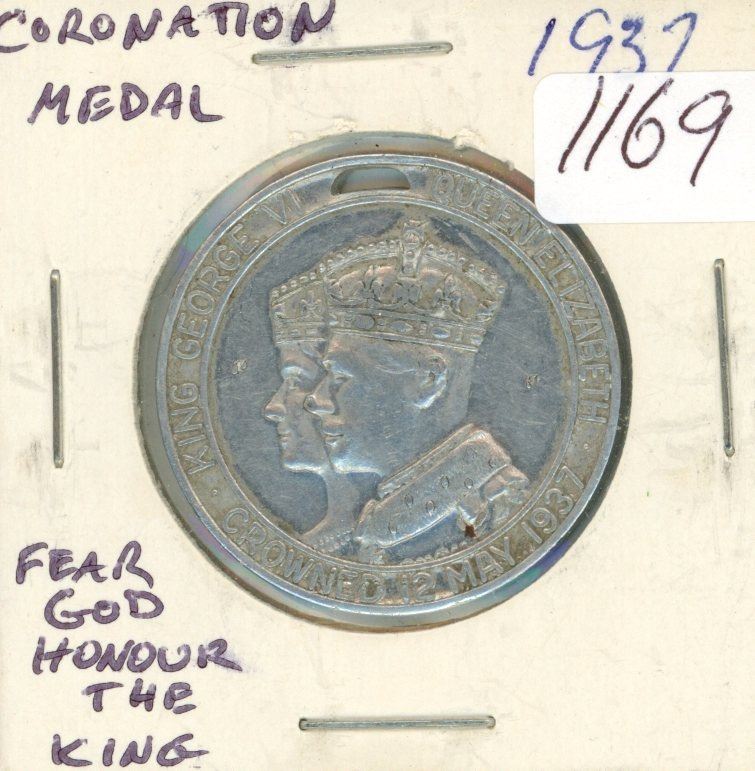 1937 British Coronation medal. Co-joined heads of George VI & Elizabeth. Fear God. Honour the King. EF.