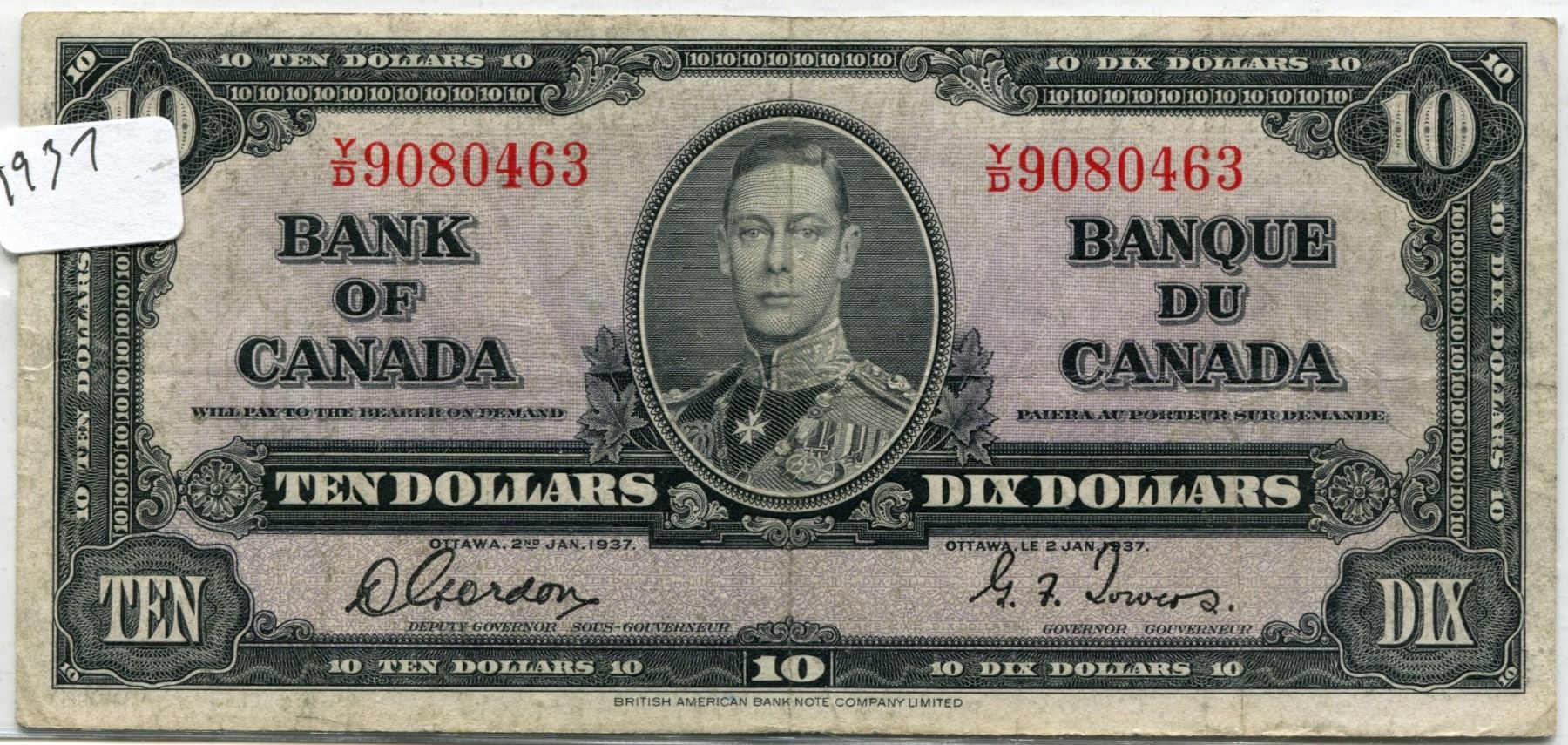 1937 Canada 10 Dollar Bill