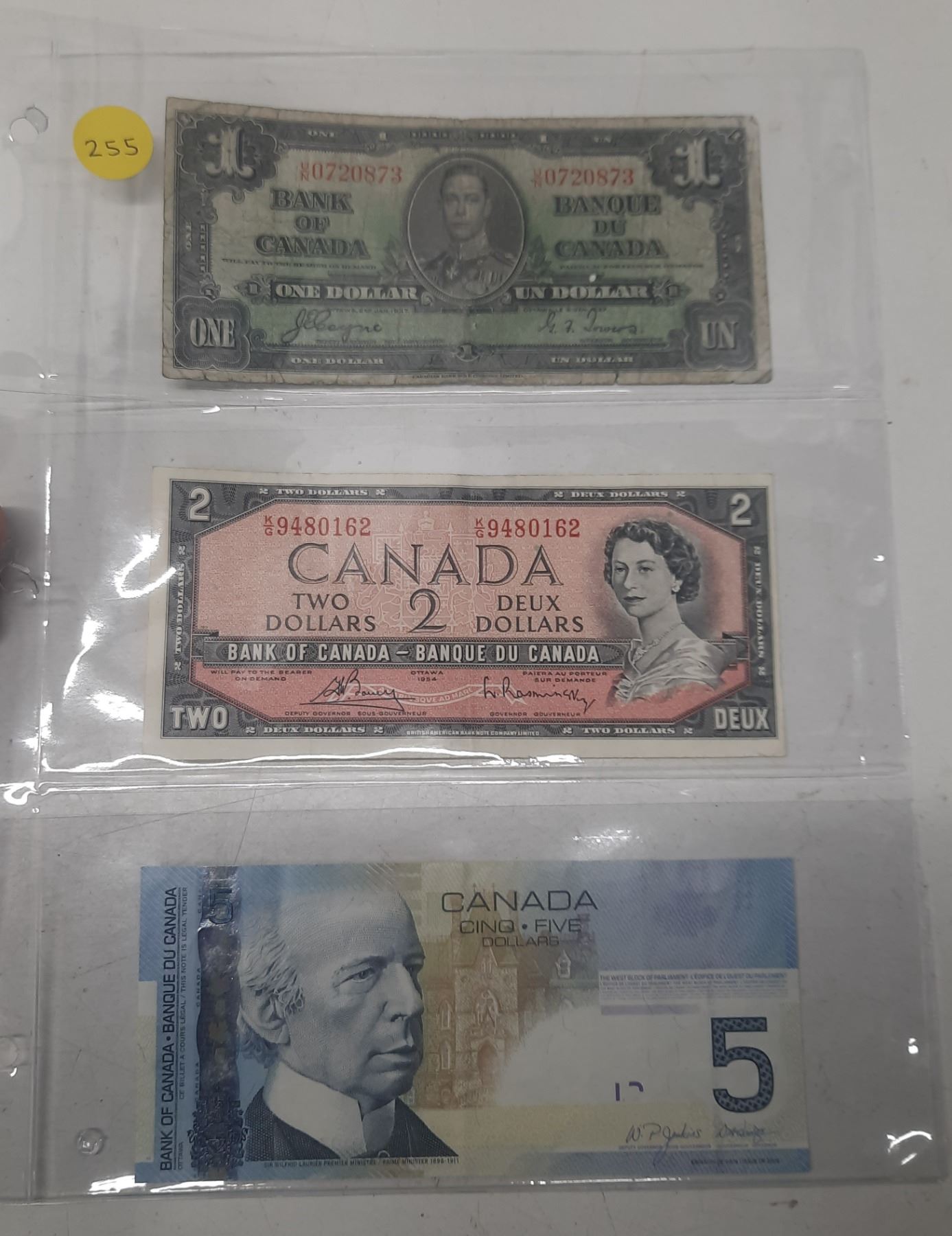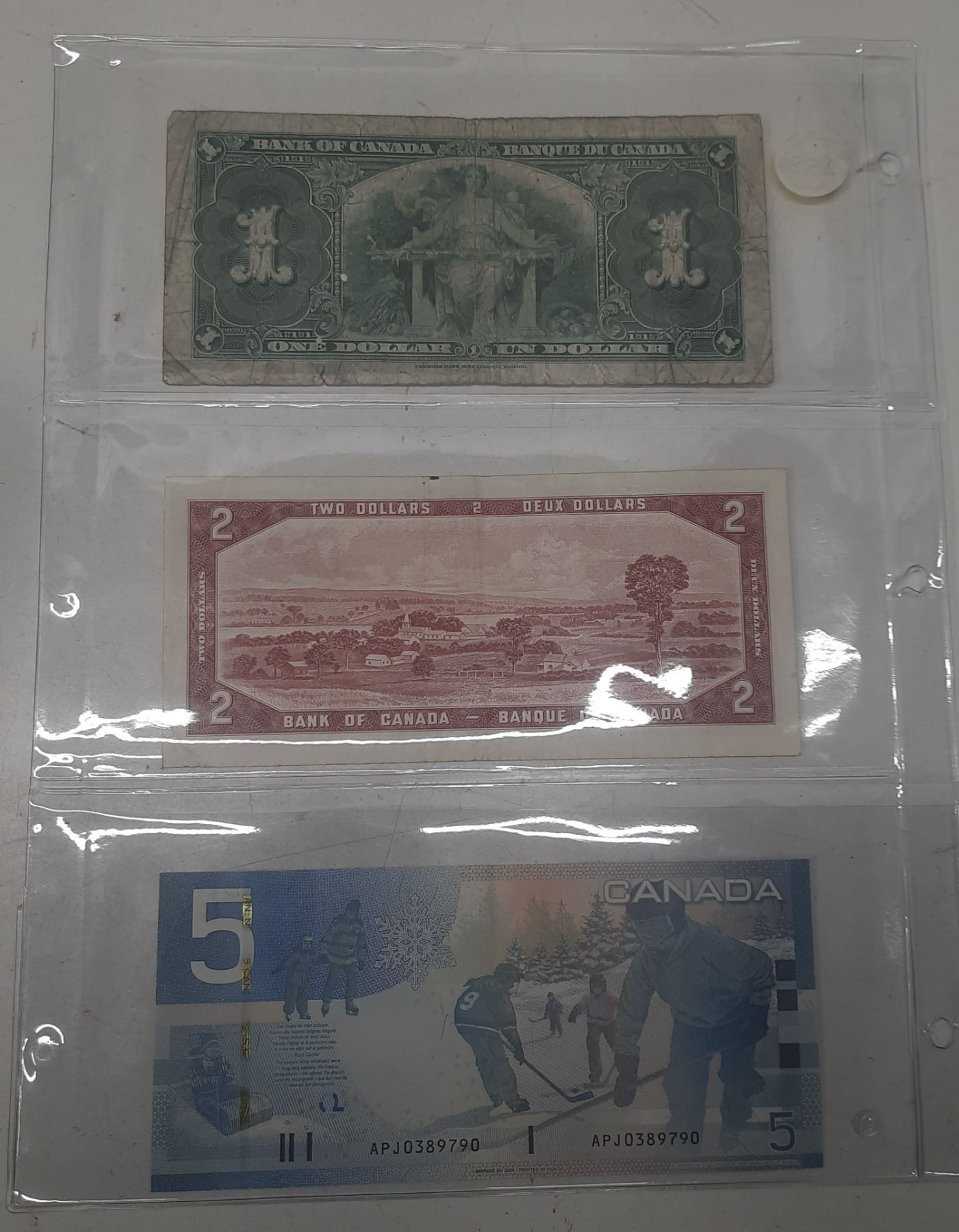 1937 Canada One, 1954 Canada Two, 2006 Canada Five Dollars.