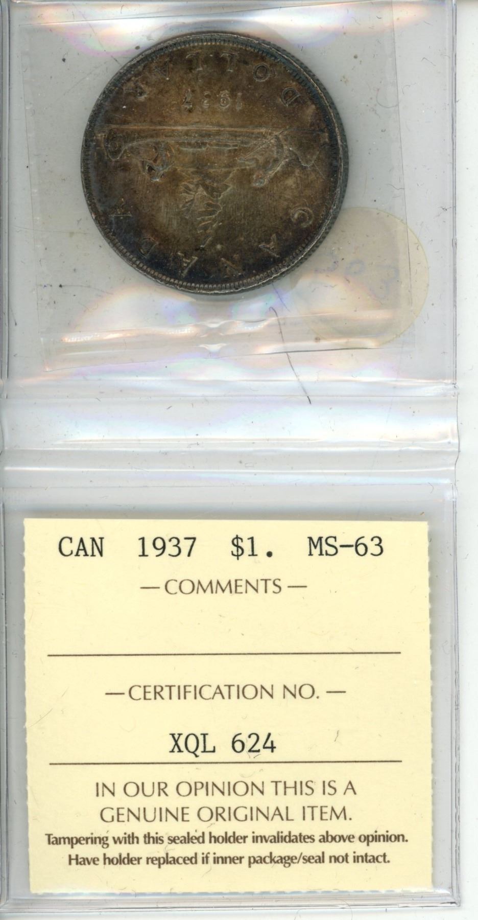 1937 Canada One Dollar - MS-63 - Silver - XQL 624 - ICCS.