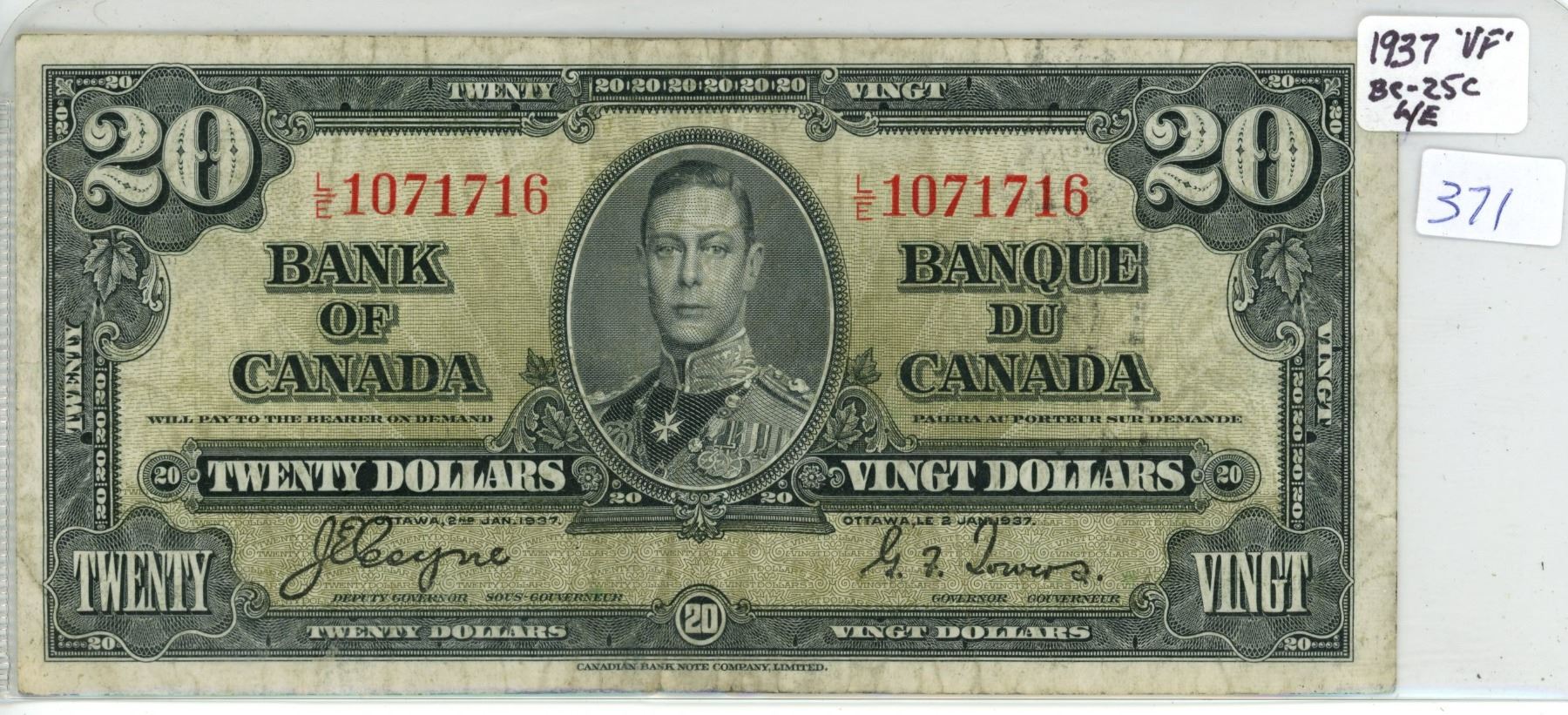 1937 Canada twenty dollar bill $20