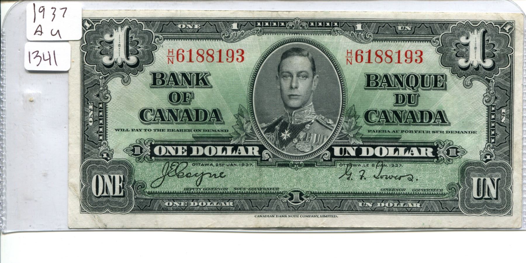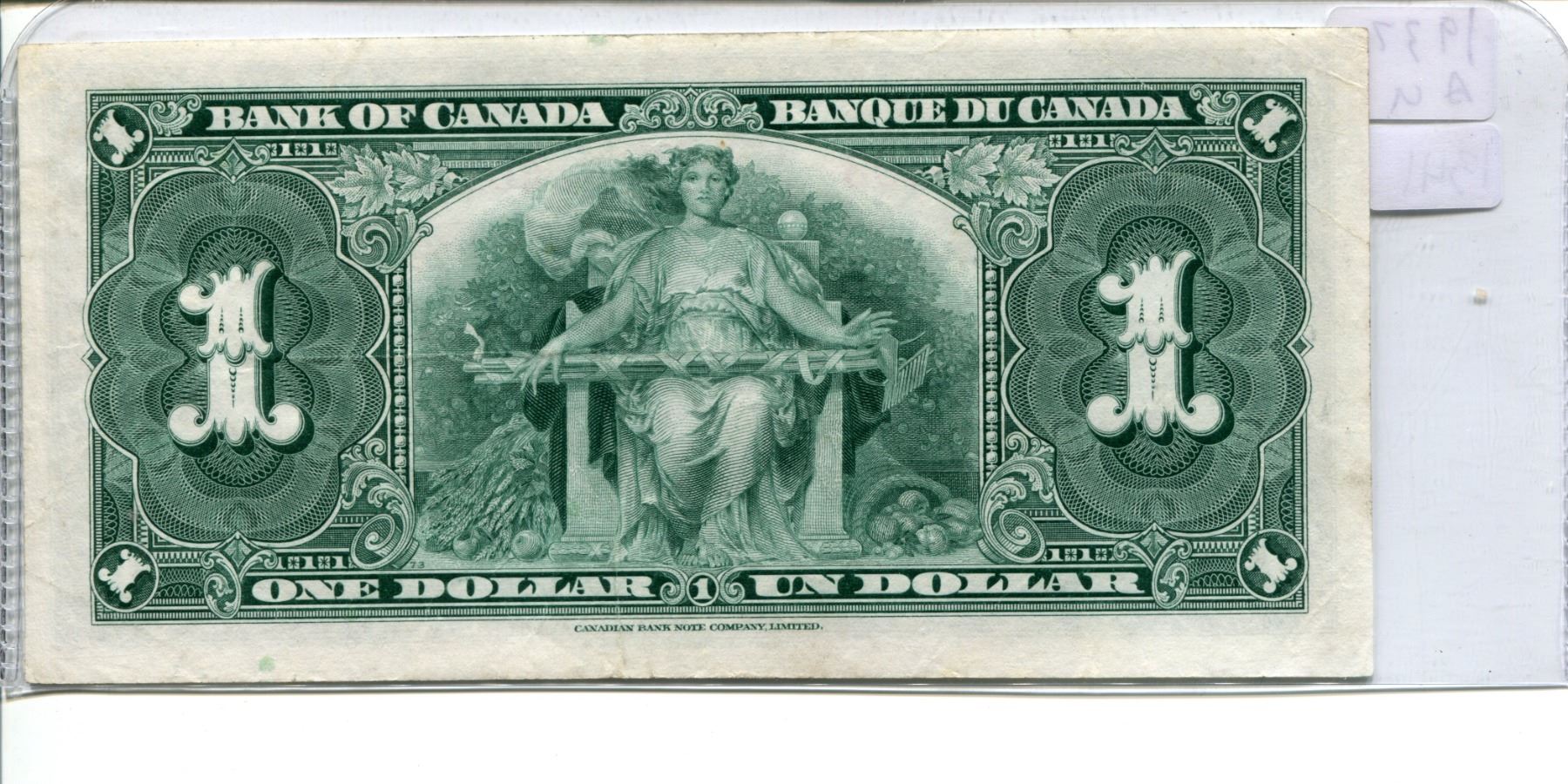 1937 Canadian $1.00 One dollar bill