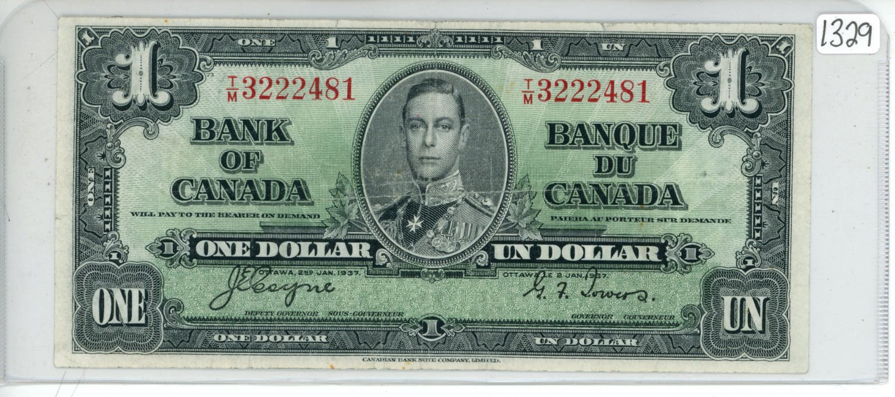 1937 Canadian 1 dollar bill - Coyne/Towers - T/M 3222481