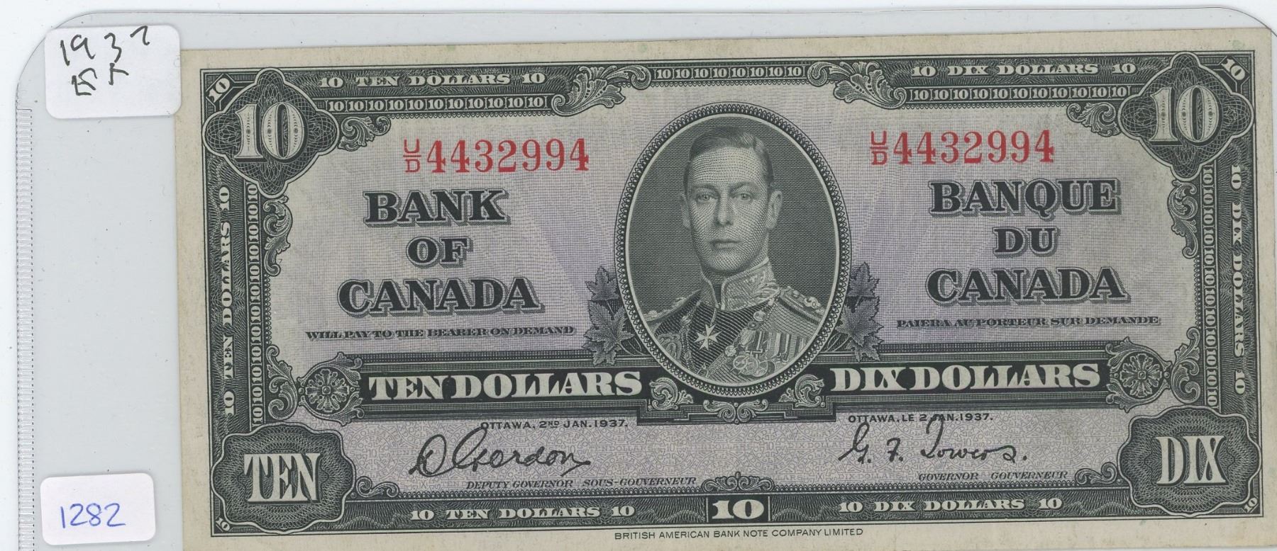 1937 Canadian $10 Bill Bank of Canada